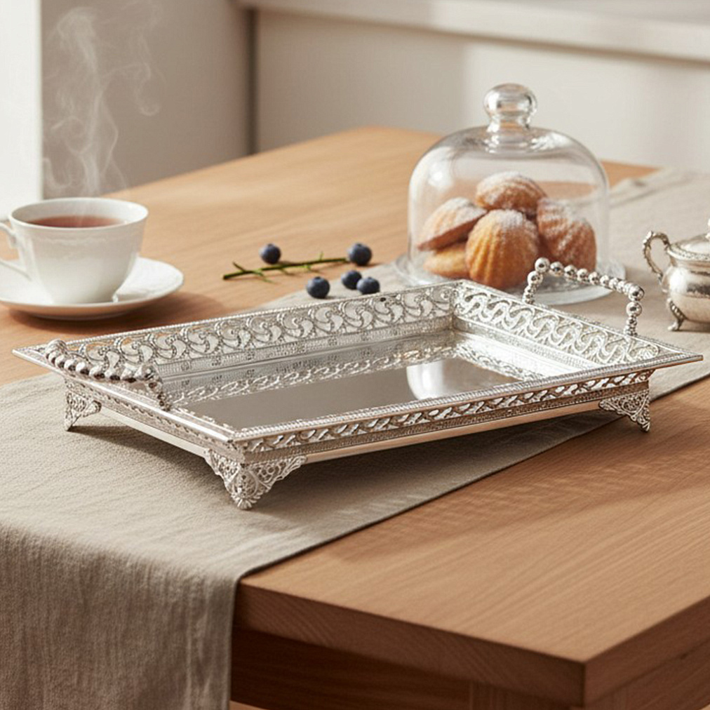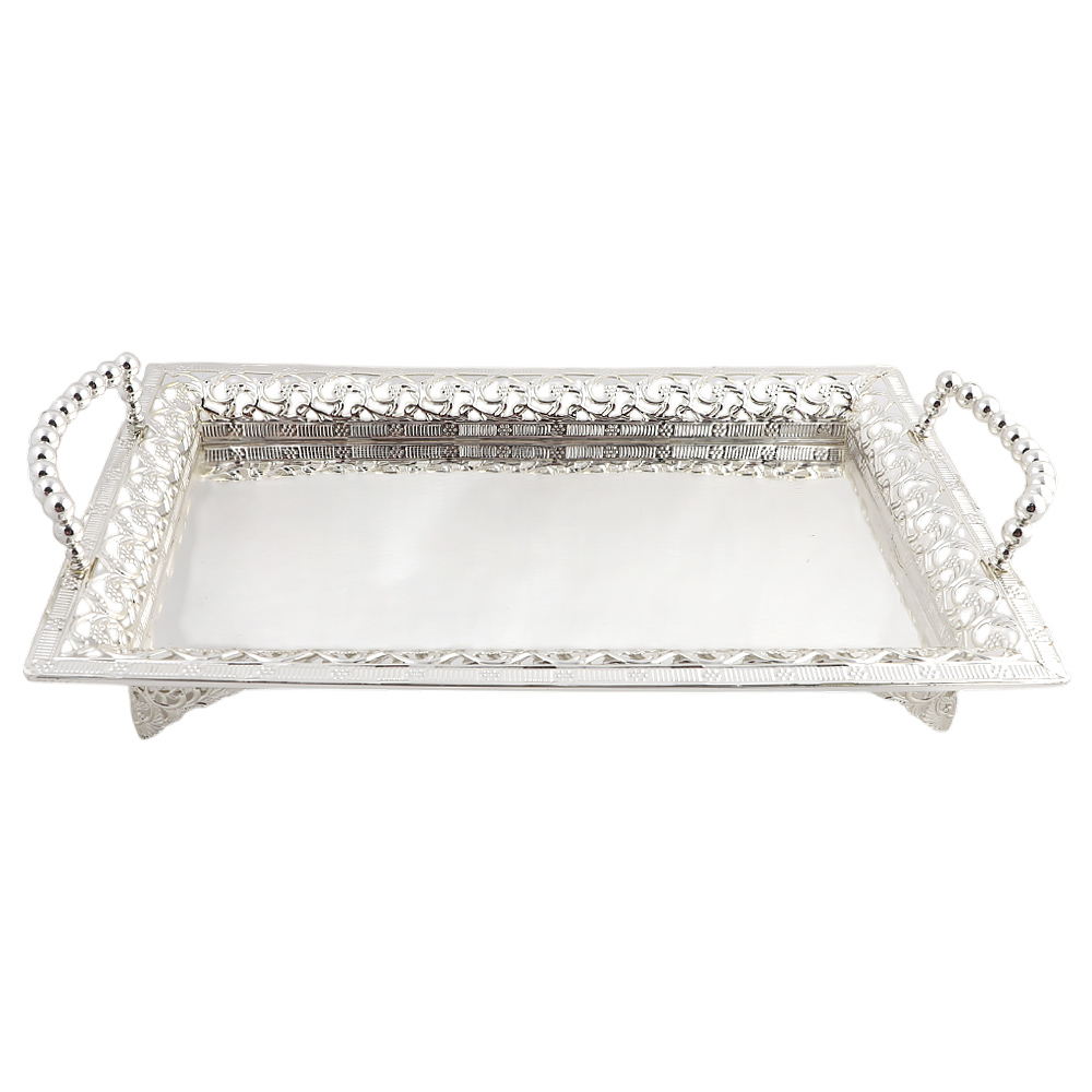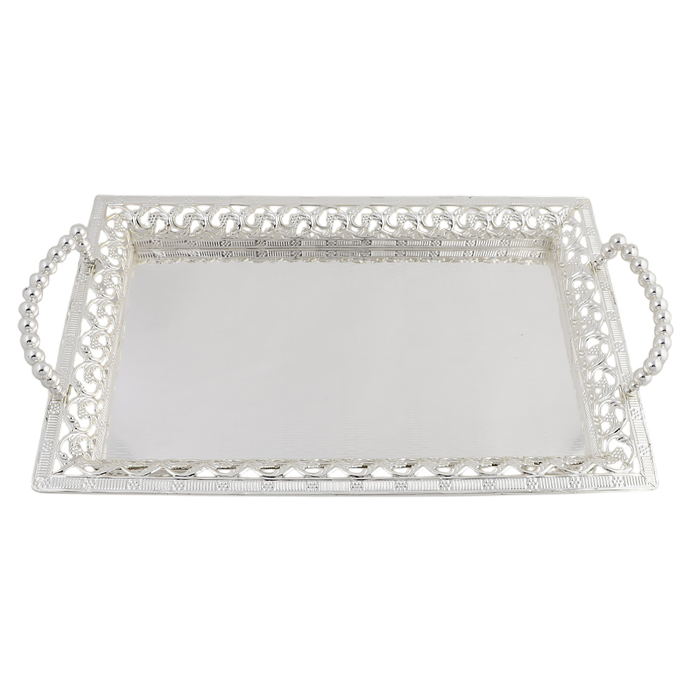 Блюдо декоративное из металла с ручками (серебро)