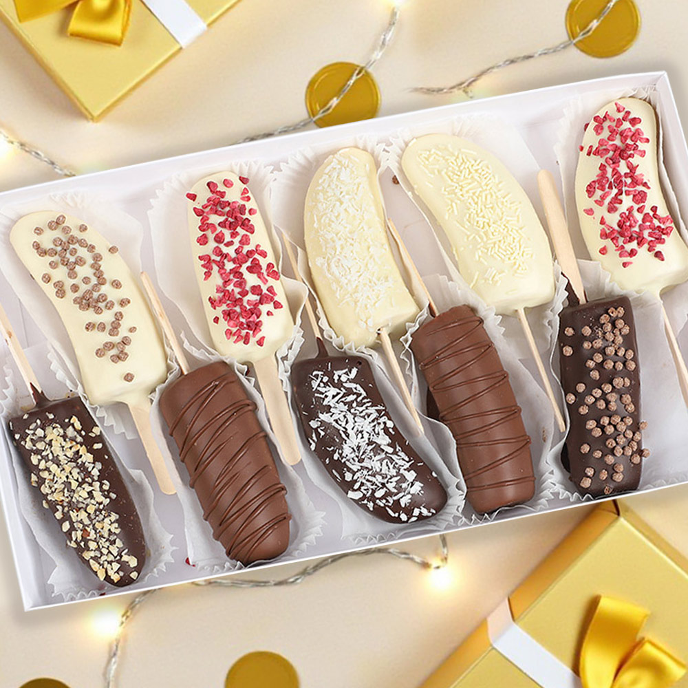 Свежие бананы в горьком, молочном, белом шоколаде набор 700г