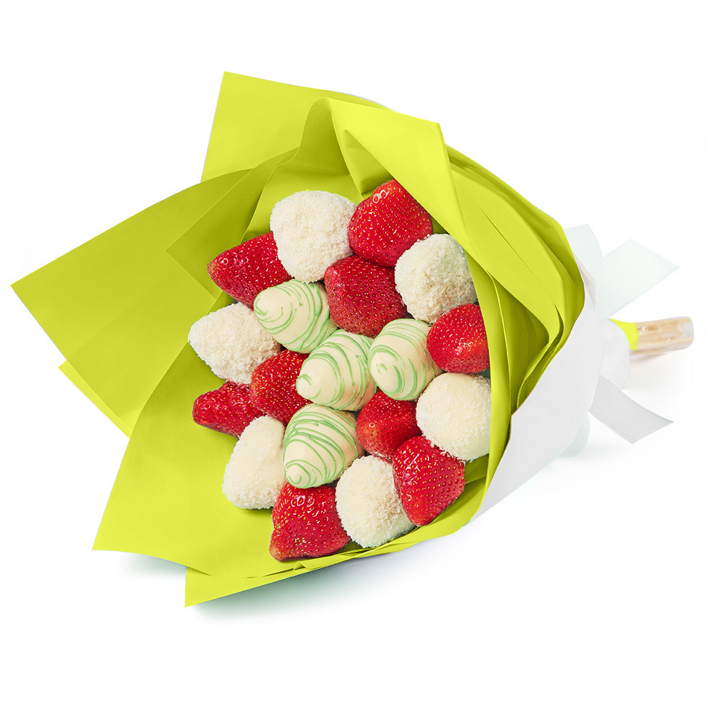 В наборе: Конфеты глазированные клубника в белом шоколаде с декором: