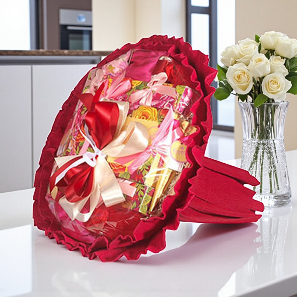 Красный букет со сладостями из шоколада - лучший подарок по любому важному поводу и даже без него!