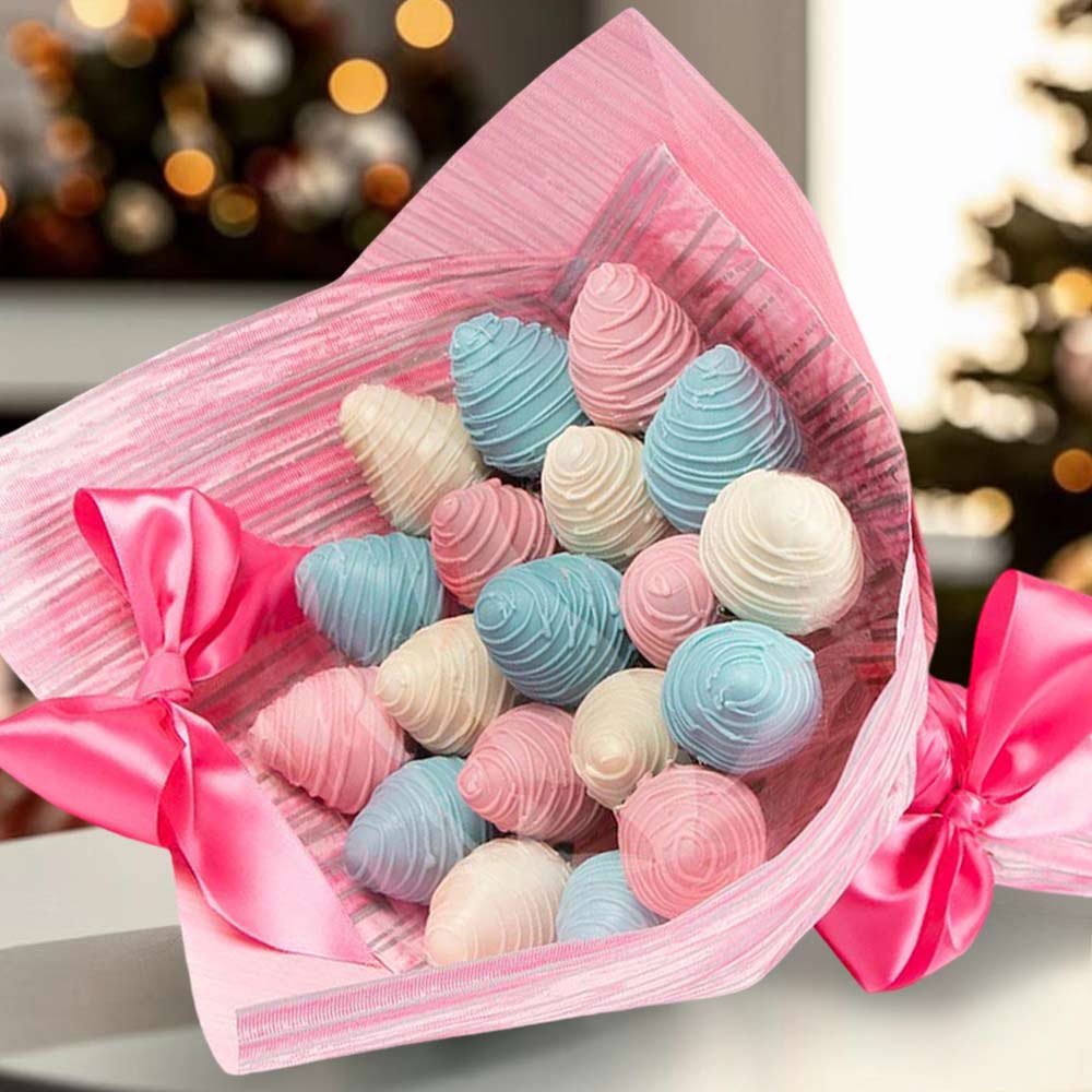 Конфеты глазированные: Свежая клубника в разноцветном белом шоколаде