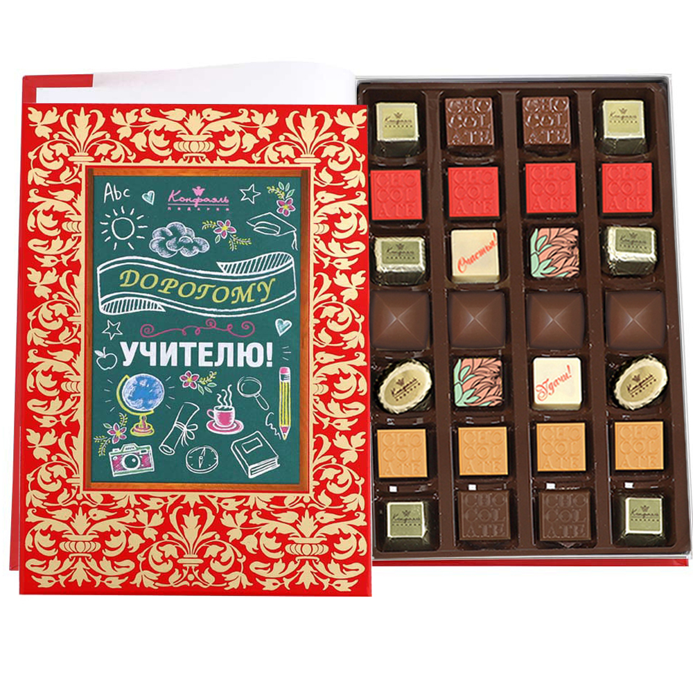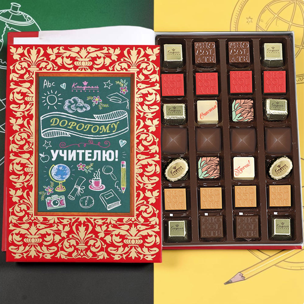 шоколадные массы - какао-масло, какао тертое, сахар, молоко сухое цельное, молоко сухое обезжиренное, лактоза, эмульгатор (лецитин соевый), ароматизатор («Ванилин»); начинки - сахар, патока, какао-масло, какао тертое, молоко сгущенное (молоко цельное, сахар (сахароза, лактоза)), сливки сгущённые с сахаром (сливки нормализованные, сахар (сахароза), лактоза), сливки сгущённые с сахаром (сливки нормализованные, сахар (сахароза), лактоза), молоко сухое, рафинированные дезодорированные растительные масла, натуральные вишневые и апельсиновые концентрированные соки, желирующие агенты (агар, желатин говяжий), стабилизатор (мальтодекстрин, гуммиарабик), коньяк (дистиллят коньячный, вода, сахар, натуральный пищевой краситель «карамельный колер»), спирт этиловый ректификованный, консервант (сорбиновая кислота), регулятор кислотности (лимонная кислота), эмульгаторы (лецитин соевый, Е471), ароматизаторы («Вишня», «Апельсин», «Ваниль», «Черная смородина»,«Клубника», «Карамель», «Кофе», «Кокосовые сливки», «Бейлиз»), натуральный пищевой краситель «Карамельный колер»