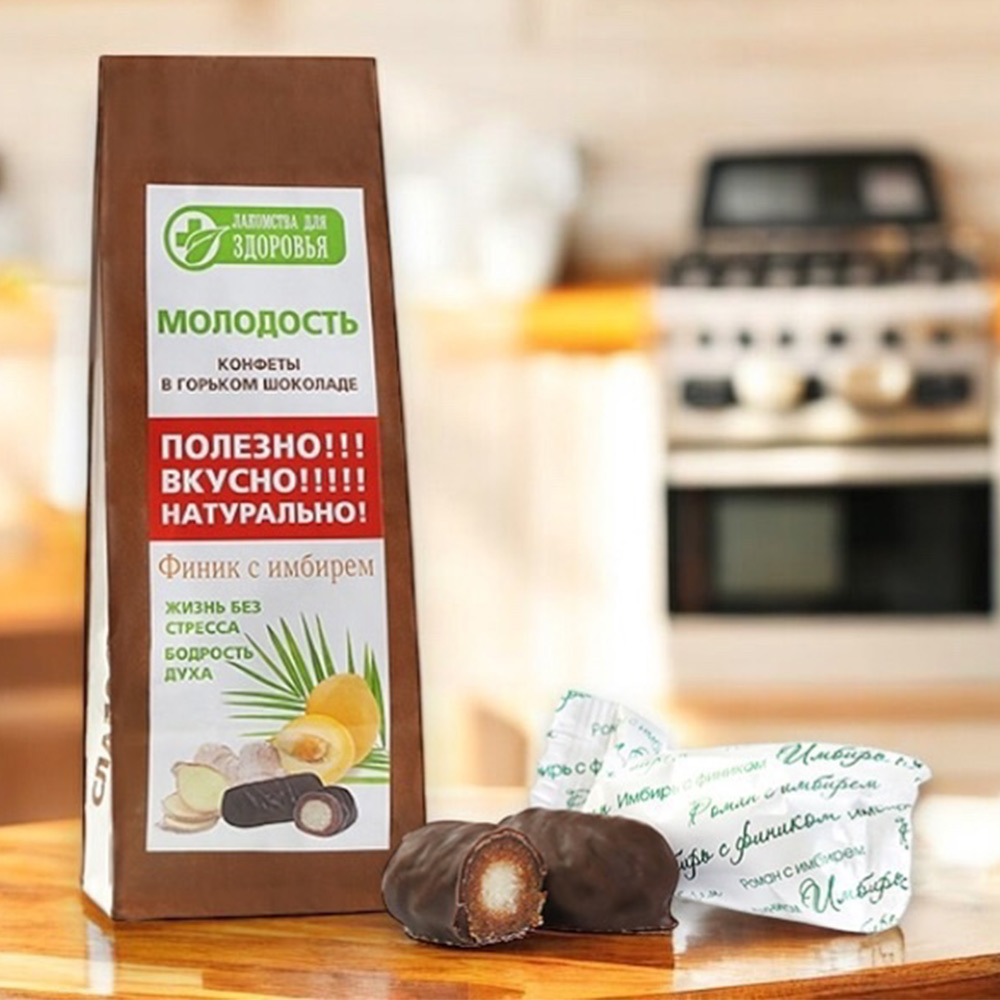 Конфеты глазированные "Курага с имбирем" с горьким шоколадом