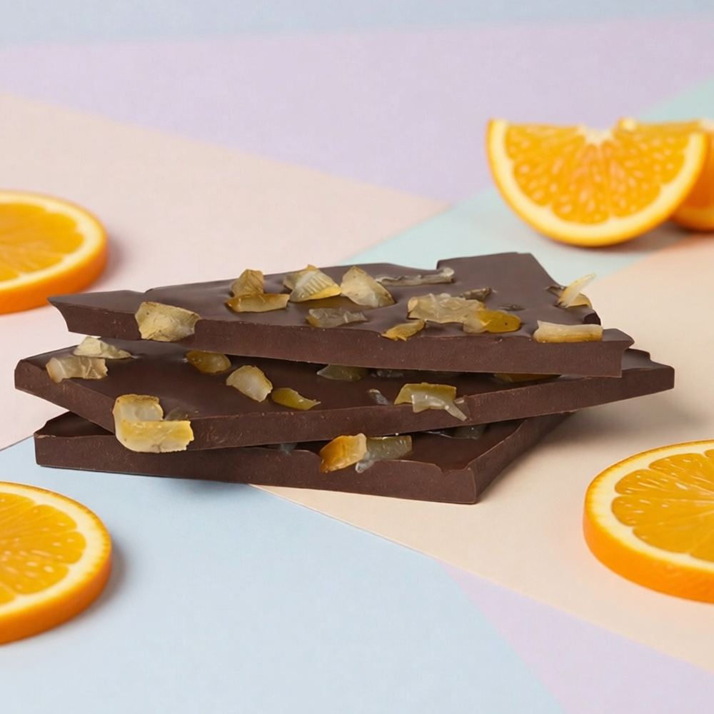 Горький шоколад с цукатами апельсиновых корочек (ломаный)
