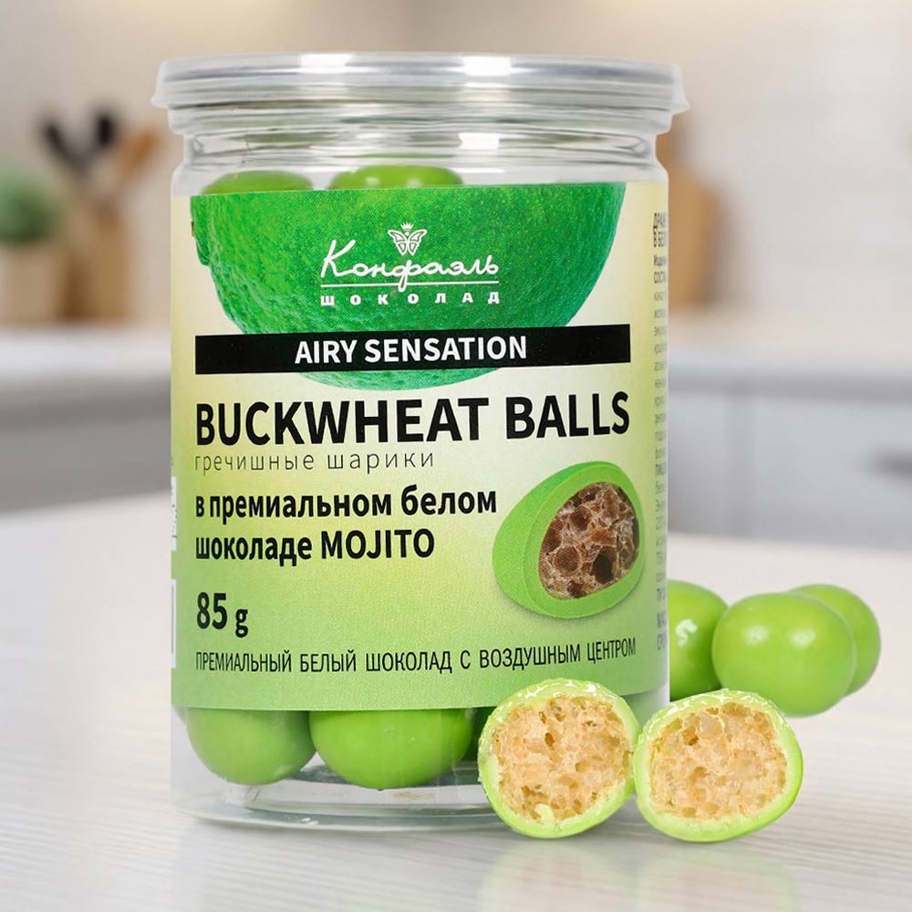 Гречневые шарики в белом шоколаде со вкусом мохито