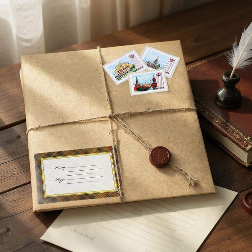 1) В крафтовой бумаге, с оформлением как телеграмма;