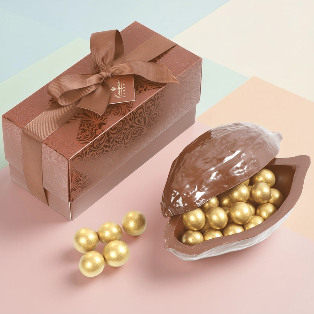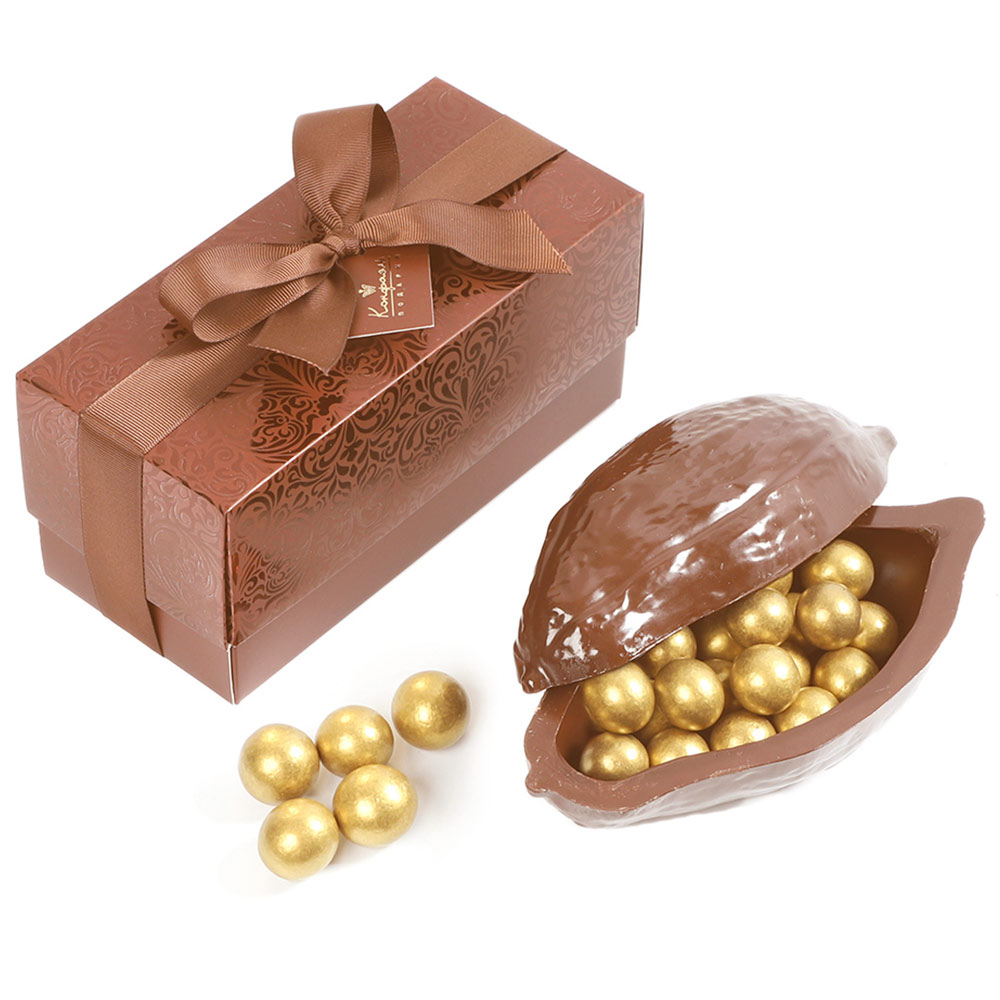 Шоколадный какао-боб — прекрасный сувенир в элегантной упаковке, которую по достоинству оценят только истинные ценители эстетики.