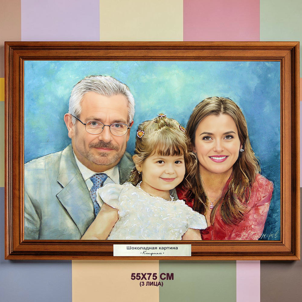 Уникальная картина, написанная шоколадными красками, на шоколадном полотне – необычный и дорогой подарок на день рождения и юбилей родителям, боссу, другу, а также целой компании и организации. Шоколадная картина может стать самым ярким и дорогим подарком на любом празднике.