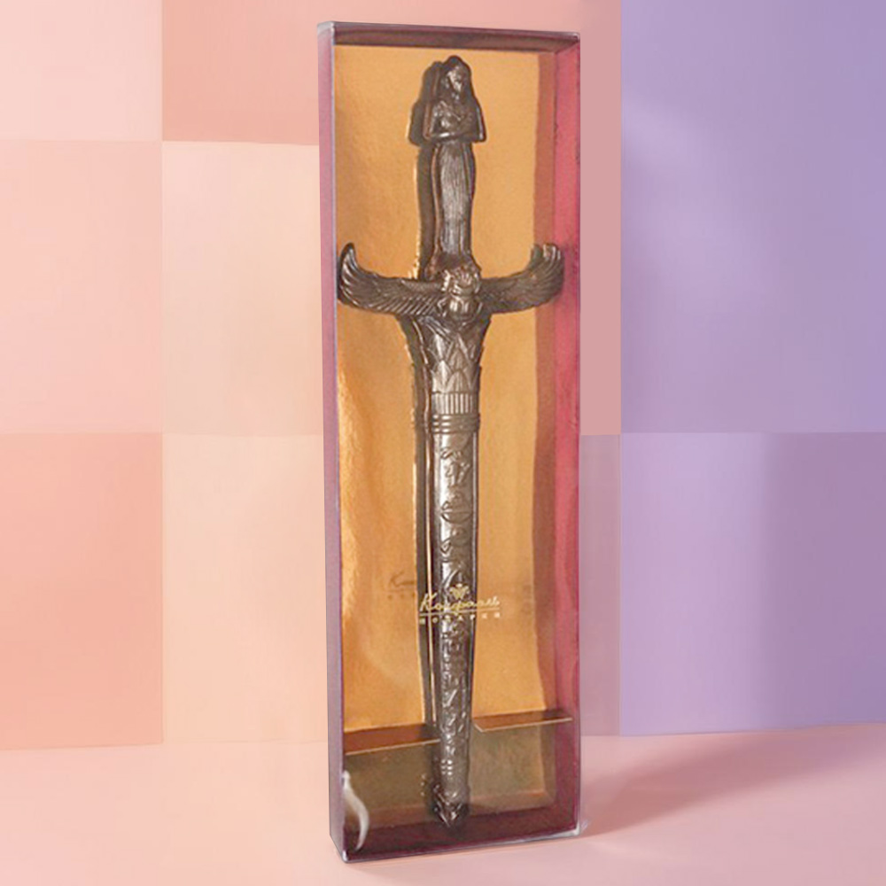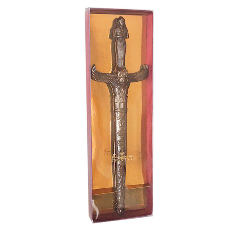Десерт в форме старинного египетского кинжала из молочного шоколада поражает высочайшей точностью воссоздания каждой детали.