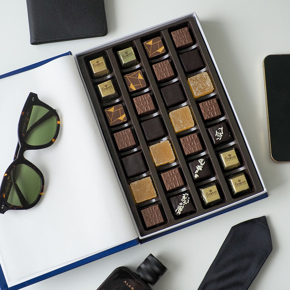 Состав: шоколад - сахар, какао тёртое, масло какао, сыворотка молочная сухая, сухое цельное молоко, эмульгатор (лецитин соевый), ароматизаторы; начинки - сахар, патока, какао-масло, какао тертое, молоко сгущенное (молоко цельное, сахар (сахароза, лактоза)), жир специального назначения (масло ши, рапсовое масло, соевое масло, антиокислитель( лимонная кислота)), молоко сухое цельное, молоко сухое обезжиренное, белый шоколад (сахар, молоко сухое цельное, масло какао, эмульгатор (лецитин соевый), ароматизатор, соль), масла растительные рафинированные дезодорированные (подсолнечное, рапсовое, оливковое; масло сладко-сливочное, молоко сухое обезжиренное), масло сладко - сливочное, белок яичный порошкообразный, натуральный концентрированный сок (апельсина), клубника сушеная, кумкват сушеный, вафельная крошка (мука пшеничная х/п первого сорта, сахар, масло кокосовое рафинированное дезодорированное, эмульгатор (лецитин соевый), пшеничные волокна (клетчатка), ароматизатор), цукаты лимонных корочек, папайя сушеная, ананас сушеный, финики, слива свежая, абрикос свежий, ядра орехов фундука, ядра орехов миндаля,стабилизаторы (мальтодекстрин), желирующий агент (агар), желатин говяжий, коньяк (дистиллят коньячный, вода, сахар, пищевой краситель (сахарный колер)), спирт этиловый ректификованный, консервант (сорбиновая кислота), регулятор кислотности (лимонная кислота), эмульгаторы (лецитин соевый, Е471), ароматизаторы, пищевые красители (сахарный колер, куркумин, медные комплексы хлорофиллов и хлорофиллинов); декор - пищевые красители (Е171, куркумин).