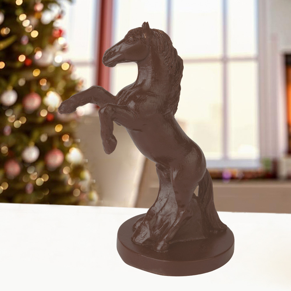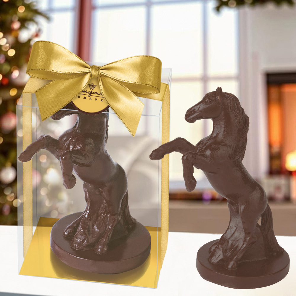 Лошади - одни из древнейших компаньонов человека. Этот конь, вставший на дыбы, абсолютно безопасен для близкого знакомства. Выполненный из вкуснейшего шоколада, он послужит прекрасной компанией для чаепития с друзьями.