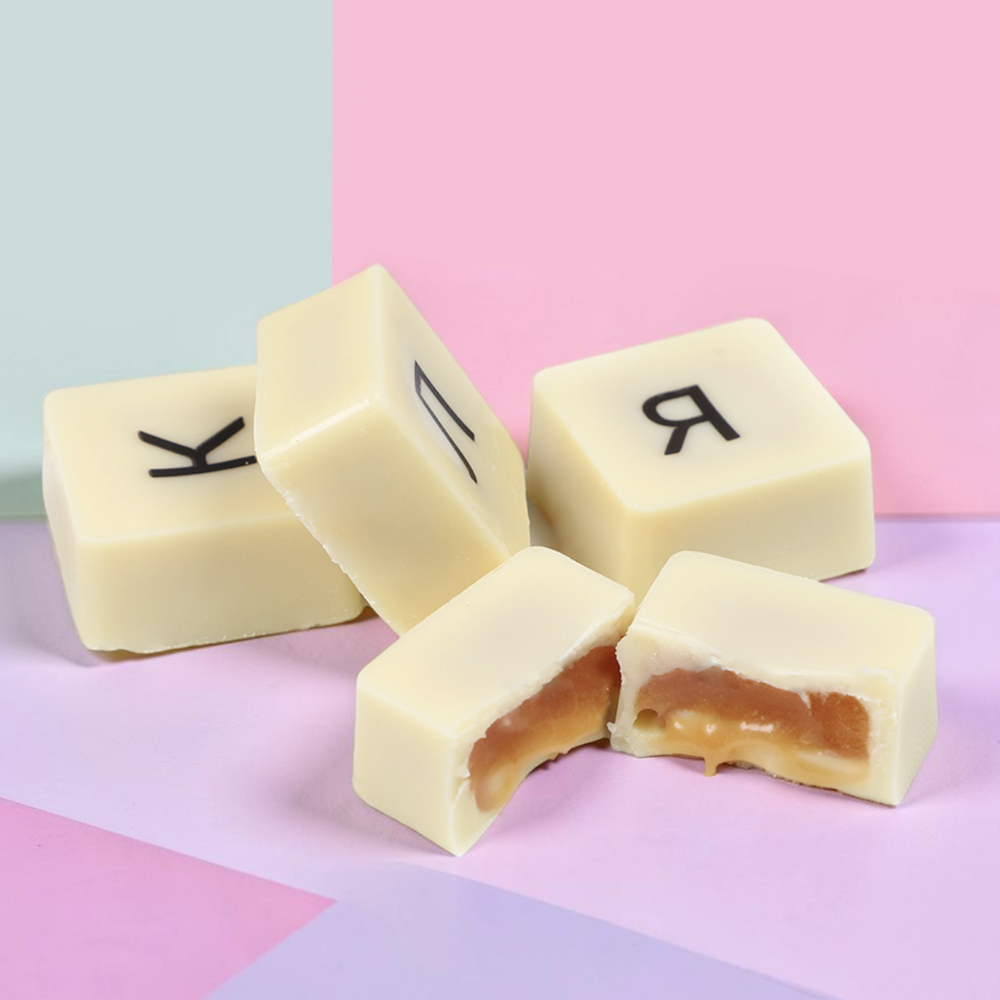 "Алфавит" штучные конфеты с буквами белый шоколад со сливочной начинкой