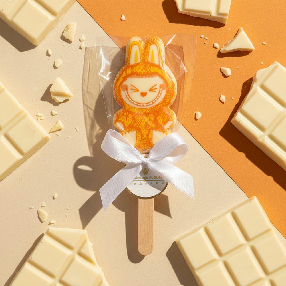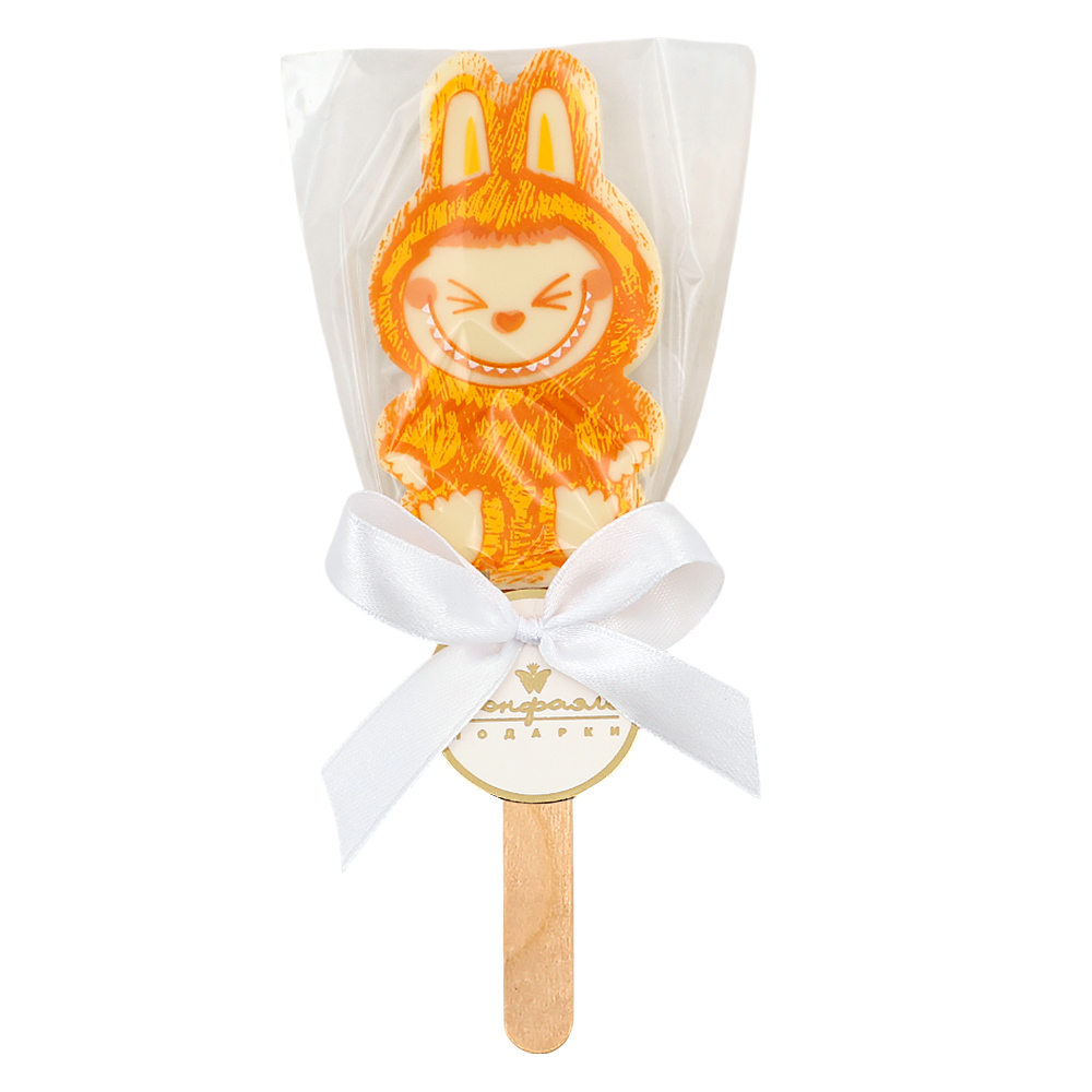 "Лабубушка" шоколад белый на палочке (оранжевый декор)19г