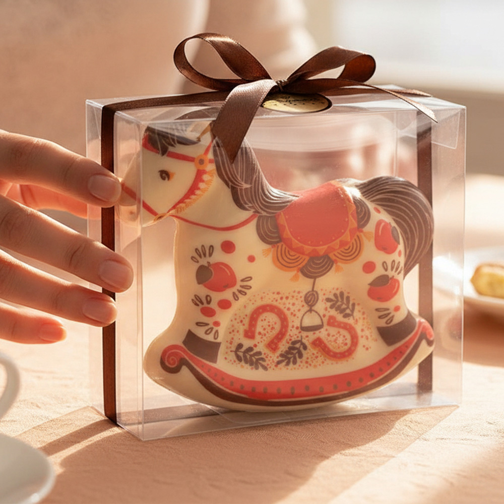 Представляете тот особенный миг, когда Ваши близкие раскрывают упаковку и видят восхитительную белоснежную лошадь из роскошного шоколада? Этот подарок запомнится надолго и подарит море позитива!