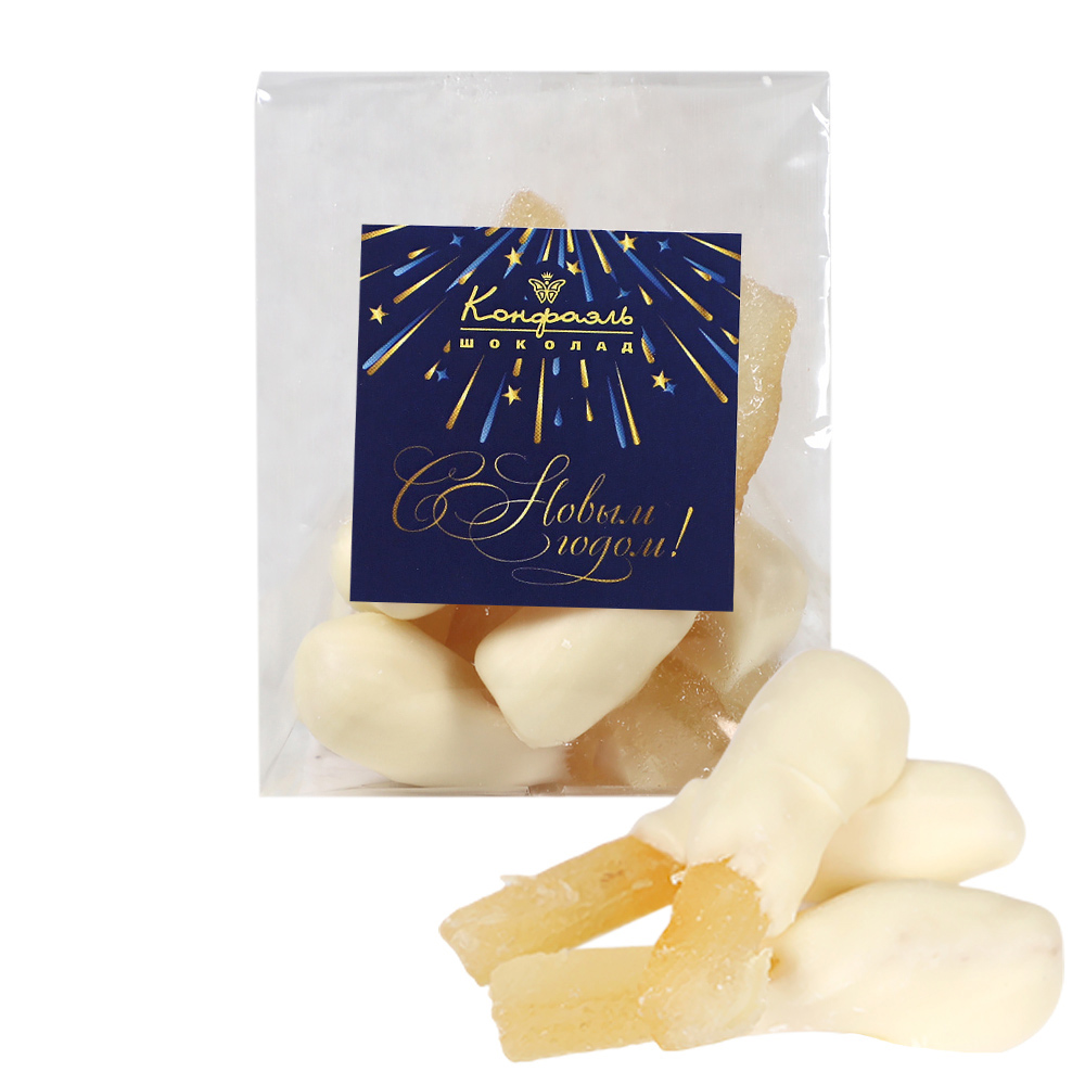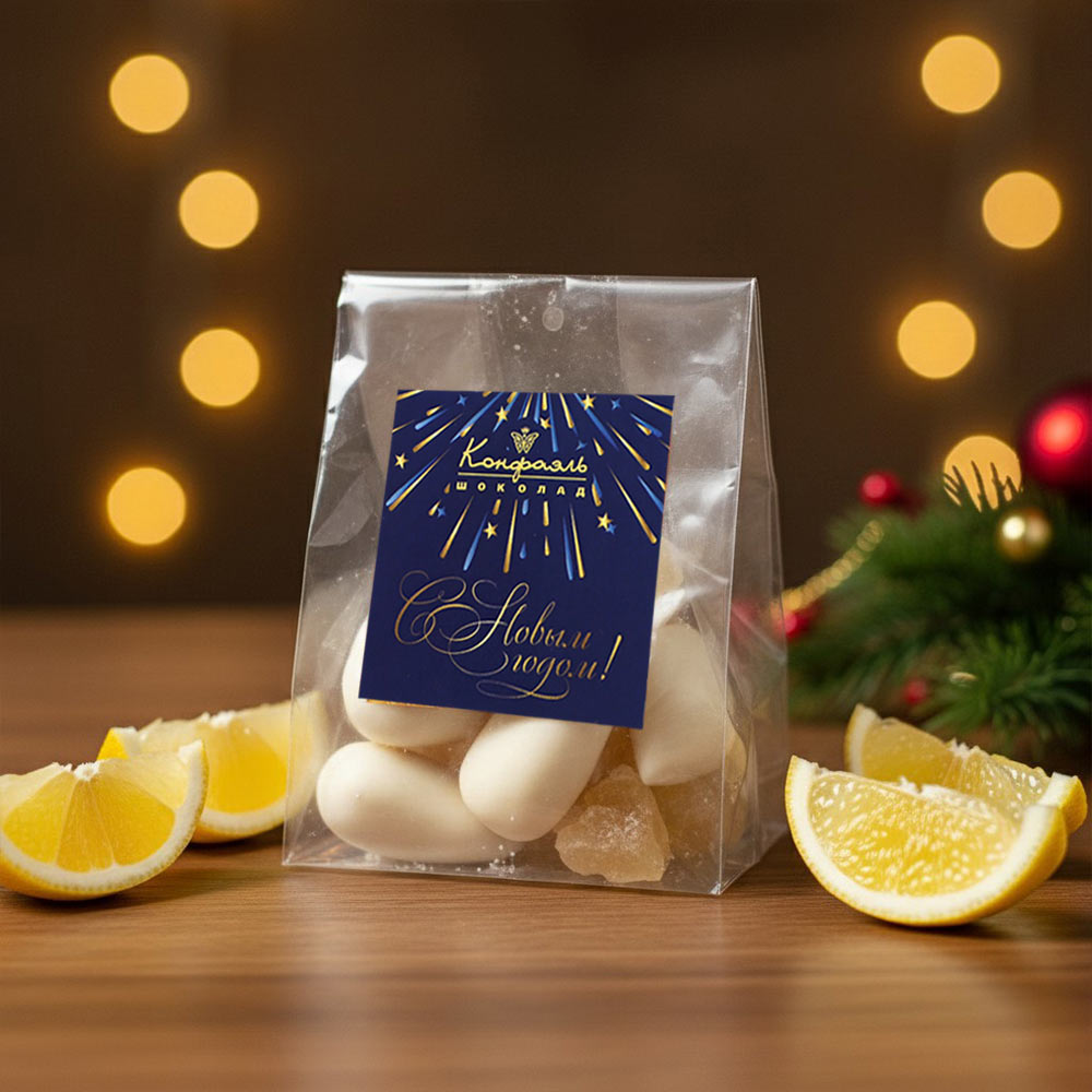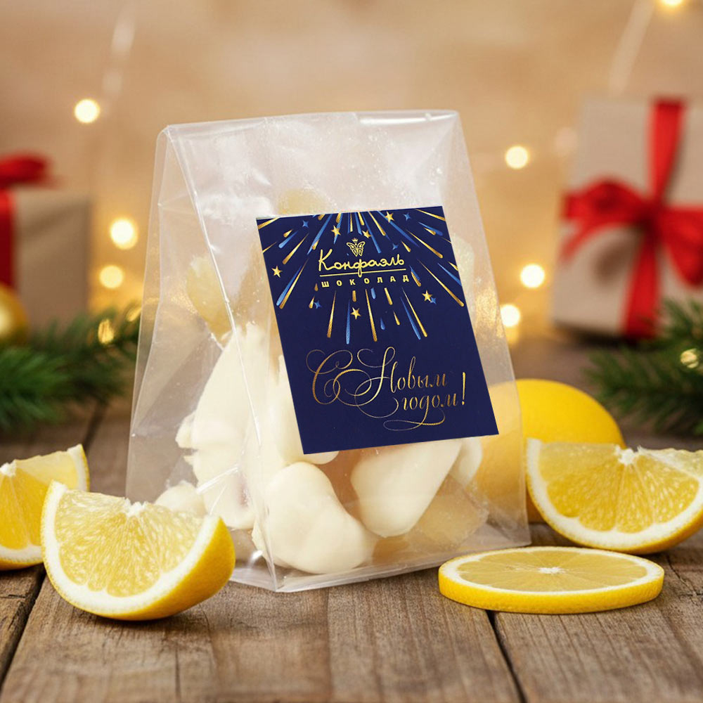 «Любимый вкус» цукаты лимонные корочки в белом шоколаде 50г (синее новогоднее оформление)
