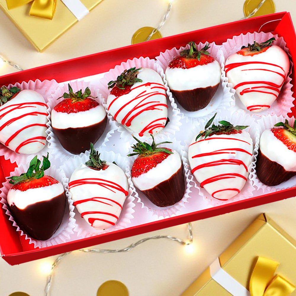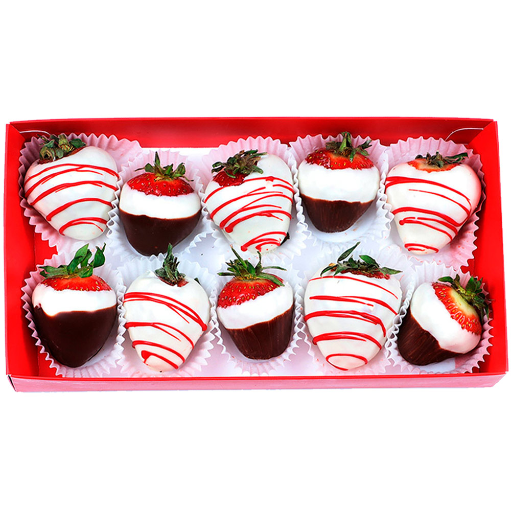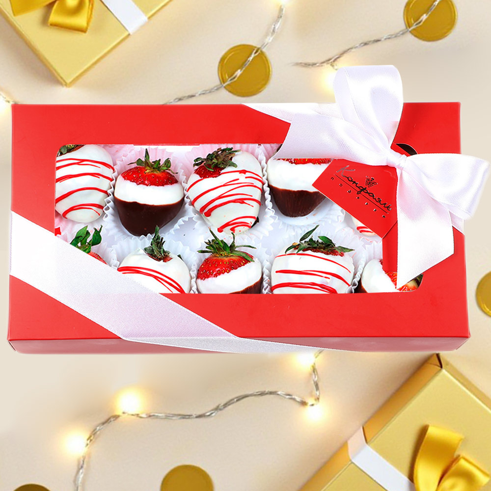 Конфеты глазированные "Клубника в шоколаде" с декором белым, горьким и цветным шоколадом