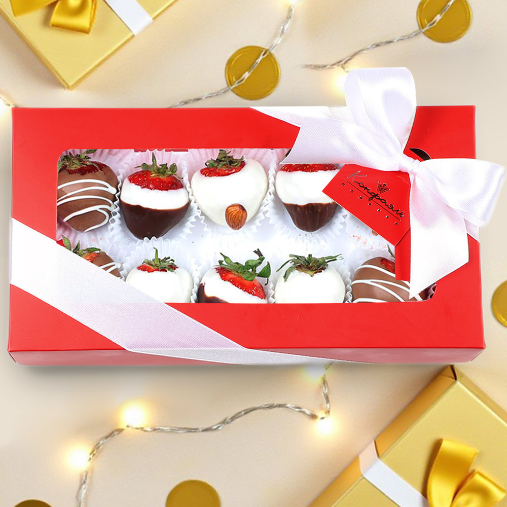Фото на сайте является примером оформления набора при среднем размере клубники.
