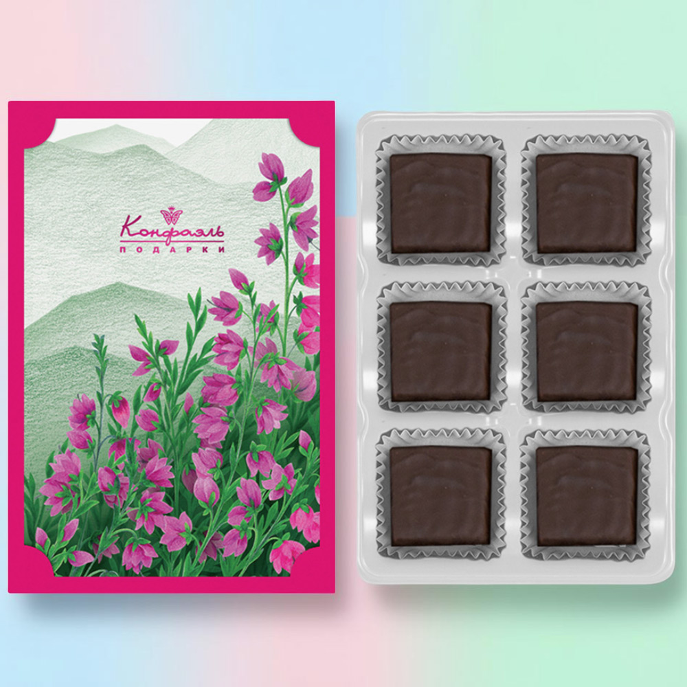 Состав: шоколад - сахар, какао тёртое, масло какао, эмульгатор (лецитин соевый), ароматизатор; начинки - сахар, патока, молоко сгущенное (молоко цельное, сахар (сахароза, лактоза)), масло сладко - сливочное, белок яичный порошкообразный, сухой сок клубники, стабилизаторы (мальтодекстрин), желирующий агент (агар), консервант (сорбиновая кислота), регулятор кислотности (лимонная кислота), эмульгаторы (лецитин соевый, Е471), ароматизаторы, пищевой краситель (красный свекольный).