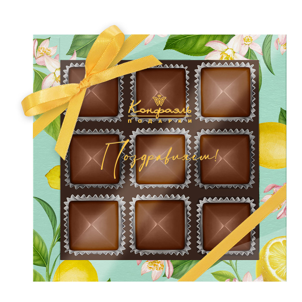 Состав: шоколад - сахар, масло какао, сыворотка молочная сухая, сухое цельное молоко, какао тёртое, эмульгатор (лецитин соевый), ароматизаторы; начинки - сахар, патока, какао-масло, какао тертое, молоко сгущенное (молоко цельное, сахар (сахароза, лактоза)), стабилизаторы (мальтодекстрин), коньяк (дистиллят коньячный, вода, сахар, пищевой краситель (сахарный колер)), спирт этиловый ректификованный, консервант (сорбиновая кислота), регулятор кислотности (лимонная кислота), эмульгаторы (лецитин соевый, Е471), ароматизаторы.