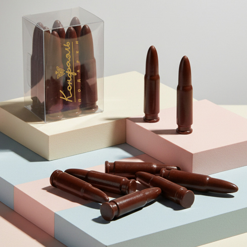 Набор патронов из молочный шоколада приятно удивит вашего мужчину и вскружит ему голову магическим ароматом какао-бобов.