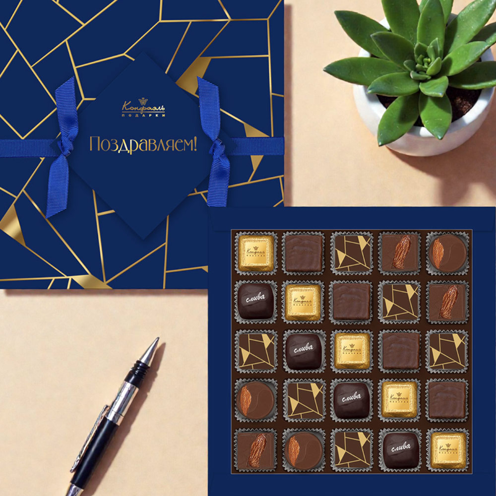 Представляем изысканный набор шоколадных конфет — идеальное решение для поздравления мужчин на 23 Февраля, а также для проявления внимания коллегам, друзьям и близким в любой значимый день.
