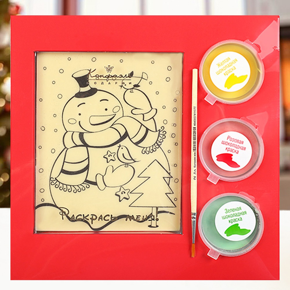 Оригинальная шоколадная раскраска "Снеговик" станет превосходным детским подарком на Новый год.