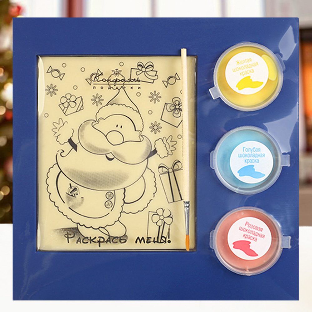 Маленькие озорники могут сначала раскрасить веселого Деда Мороза разноцветными шоколадными красками, а потом съесть его или оставить рисунок на память.