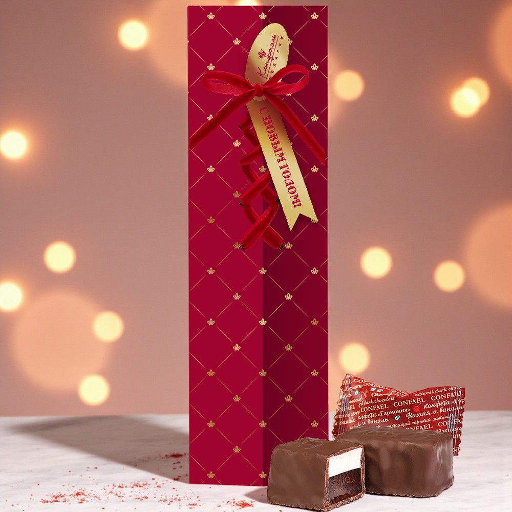 Состав: шоколадная масса – какао тертое, какао-масло, сахар, молоко сухое цельное, молоко сухое обезжиренное, лактоза, эмульгатор (лецитин соевый), ароматизатор («Ванилин»); начинки – сахар, патока, молоко сгущенное (молоко цельное, сахар (сахароза, лактоза)), масло сладко-сливочное, желирующие агенты (агар, желатин говяжий), белок яичный, регулятор кислотности (лимонная кислота), натуральный концентрированный вишневый сок, эмульгатор (Е471), ароматизаторы («Ваниль», «Вишня»).