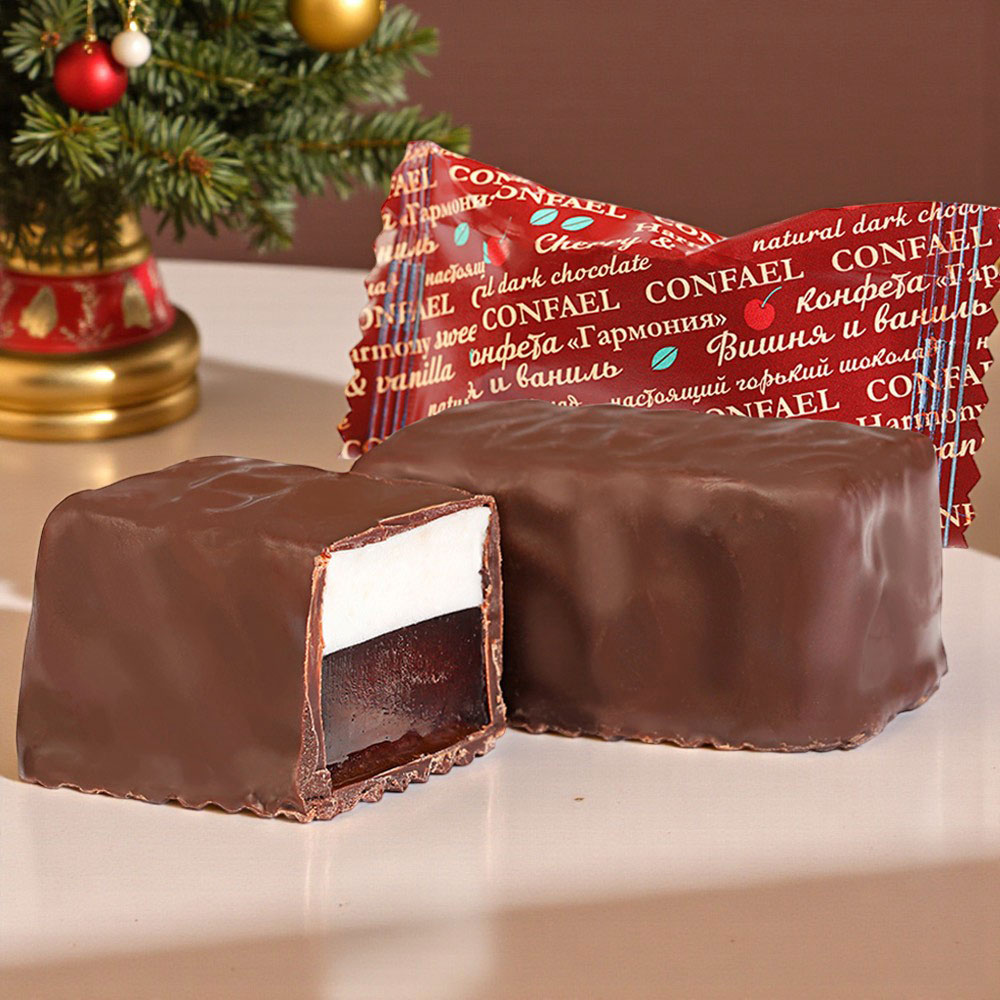 Конфеты «Комбинированные» в горьком шоколаде (вишня и ваниль)