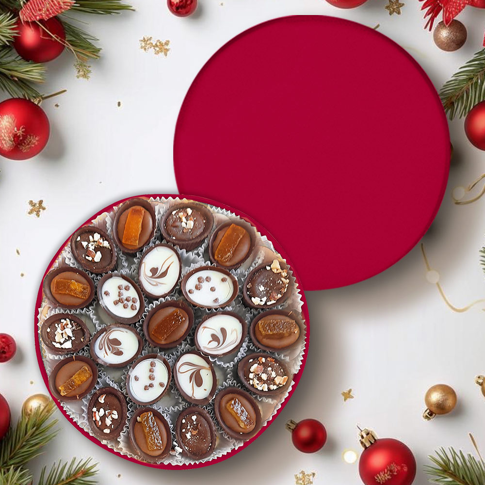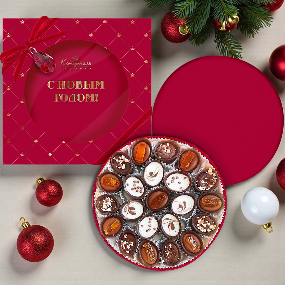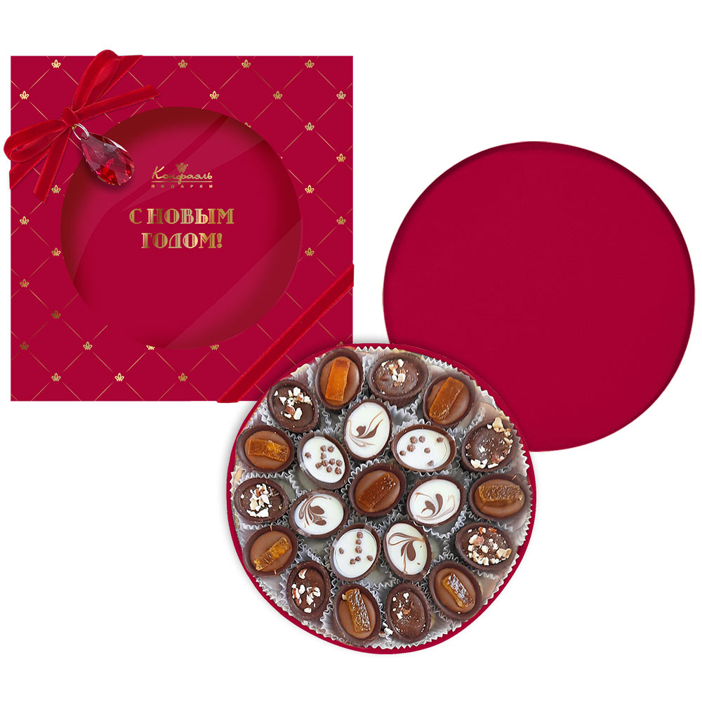 Состав: сахар, масло какао, сухое обезжиренное молоко, сухое цельное молоко, пахта сухая, эмульгатор (лецитин соевый), соль, натуральная ваниль; декор - пищевые красители куркумин, Е171, Е132, красный свекольный, глазирователь (капол). Продукция производится на предприятии, где используются арахис, кунжут, орехи, яичные и молочные продукты, злаки, содержащие глютен.