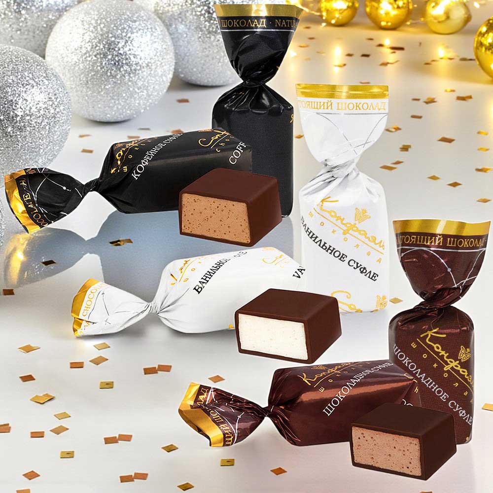 Конфеты «Суфле» в горьком шоколаде ( ванильное, шоколадное, кофейное)