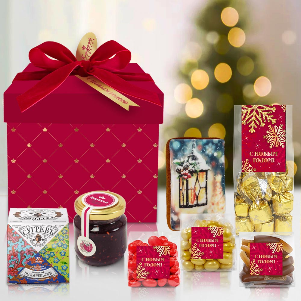Новогодний набор с конфетами, вареньем и чаем 450г