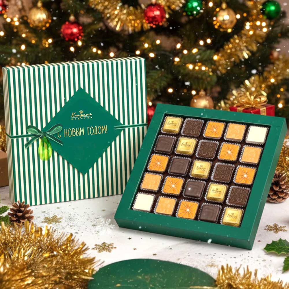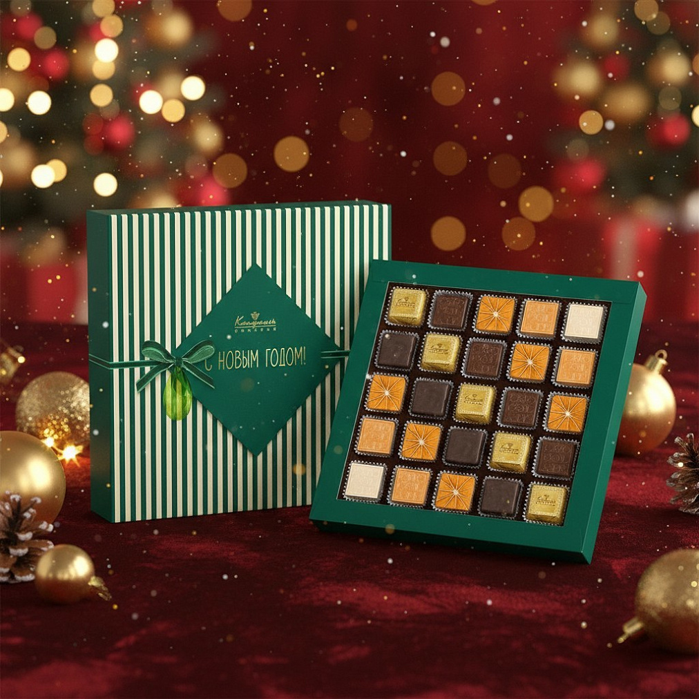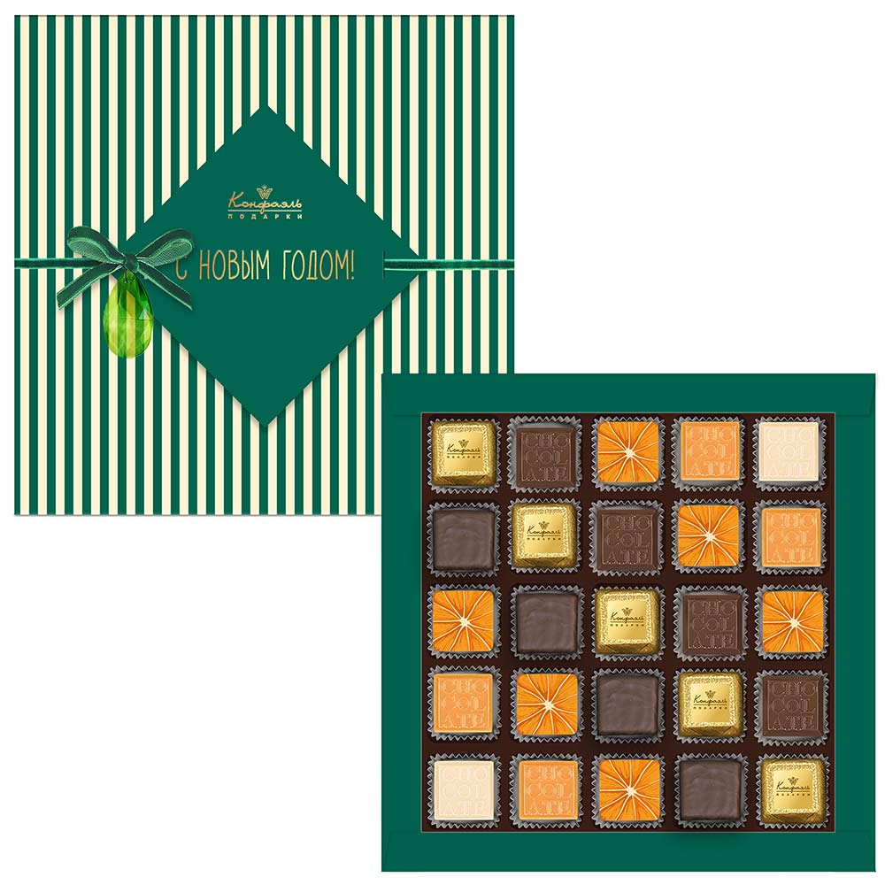 Состав: шоколадные массы -сахар, масло какао, молоко цельное сухое, сухое обезжиренное молоко, какао тертое, какао-порошок, сыворотка молочная сухая, пахта сухая, молочный жир, паста ореховая из ядер фундука, эмульгаторы (соевый лецитин, Е476), соль, натуральная ваниль, ароматизаторы; начинки - сахар, патока, молоко сгущенное (молоко цельное, сахар (сахароза, лактоза)), жир специального назначения (масло ши, рапсовое масло, соевое масло, антиокислитель( лимонная кислота)), молоко сухое цельное, молоко сухое обезжиренное, белый шоколад (сахар, масло какао, сухое обезжиренное молоко, сухое цельное молоко, эмульгатор (лецитин соевый), экстракт ванили), масла растительные рафинированные дезодорированные (подсолнечное, рапсовое, оливковое; масло сладко-сливочное, молоко сухое обезжиренное), масло сладко - сливочное, белок яичный порошкообразный, стабилизатор (мальтодекстрин), желирующий агент (агар), вафельная крошка (мука пшеничная х/п первого сорта, сахар, масло кокосовое рафинированное дезодорированное, эмульгатор( лецитин соевый), пшеничные волокна (клетчатка), ароматизатор), коньяк (дистиллят коньячный, вода, сахар, пищевой краситель (сахарный колер)), консервант (сорбиновая кислота), регулятор кислотности (лимонная кислота), эмульгаторы (лецитин соевый, Е471), сухой сок моркови, сухой сок апельсина, экстракт маракуйи, ароматизаторы, пищевые красители (сахарный колер, паприка); декор - пищевые красители (Е171, Е172, паприка)