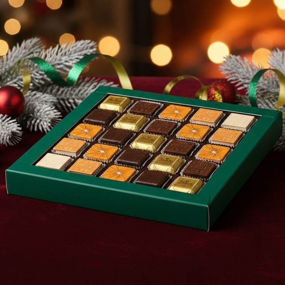 "Ассорти" молочный шоколад с кремовой начинкой со вкусом фисташки с вафельной крошкой, "Ассорти" оранжевый шоколад- сливочная начинка Манго-Маракуйя, "Ассорти" белая- кремовая начинка Кокос, "Ассорти" белый шоколад с декором- кремовая начинка "Миндаль", конфеты «Суфле» в горьком шоколаде (апельсиновое), шоколадные конфеты «Ассорти» со сливочными начинками( в фольге)