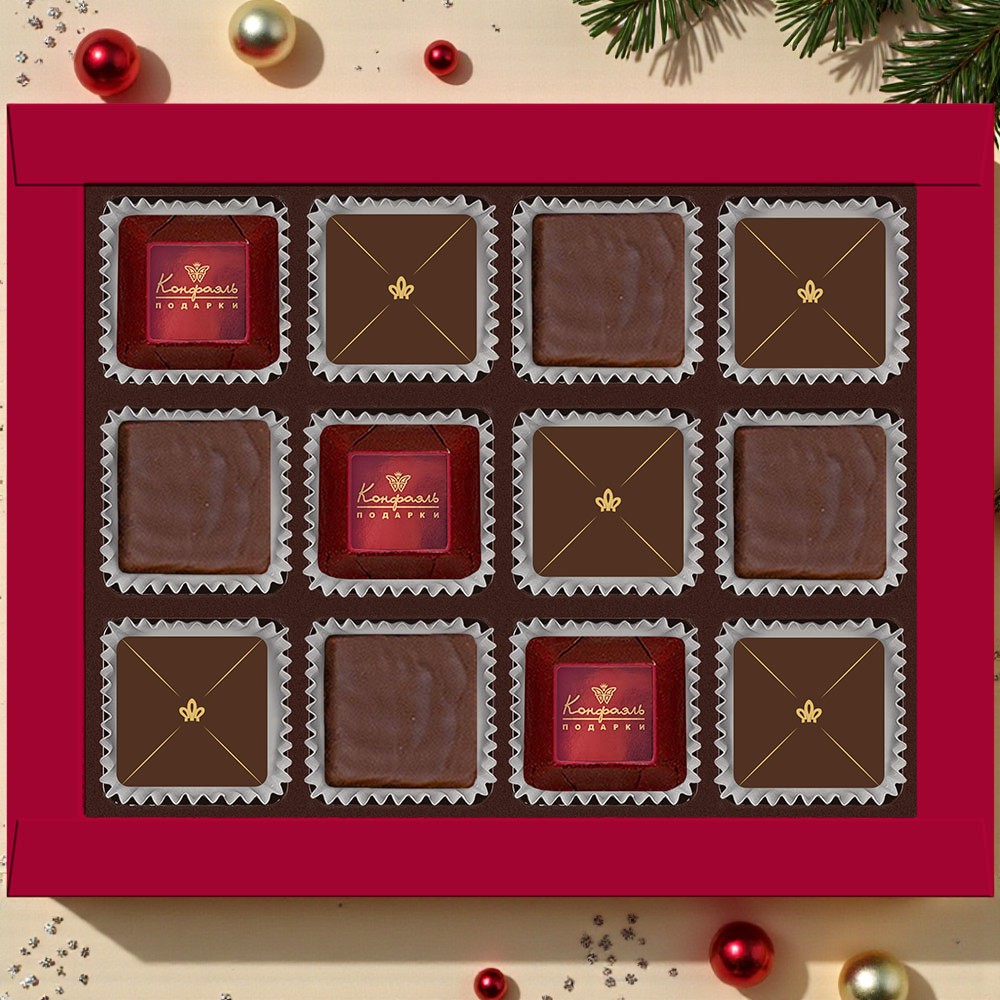 Состав: шоколадные массы - сахар, тертое какао, какао-порошок, масло какао, сыворотка молочная сухая, сухое цельное молоко, молочный жир, паста ореховая из ядер фундука, эмульгаторы (лецитин соевый, Е476), соль, ароматизаторы; начинки - сахар, патока крахмальная карамельная, молоко сгущенное (молоко цельное, сахар (сахароза, лактоза)), молоко сухое цельное, молоко сухое обезжиренное, масла растительные рафинированные дезодорированные (подсолнечное, рапсовое, оливковое; масло сливочное, молоко сухое обезжиренное), масло сладко-сливочное, жир специального назначения (масло ши, рапсовое масло, соевое масло), белок яичный, стабилизатор (мальтодекстрин), желирующий агент (агар), коньяк (дистиллят коньячный, вода, сахар, пищевой краситель «Сахарный колер»), консервант (сорбиновая кислота), регулятор кислотности (лимонная кислота), эмульгаторы (лецитин соевый, Е471), ароматизаторы, пищевые красители «Сахарный колер»; декор - пищевые красители (Е171, «Куркумин»). Внимание! Продукция производится на предприятии, где используются арахис, кунжут, орехи, яичные и молочные продукты, злаки, содержащие глютен.
