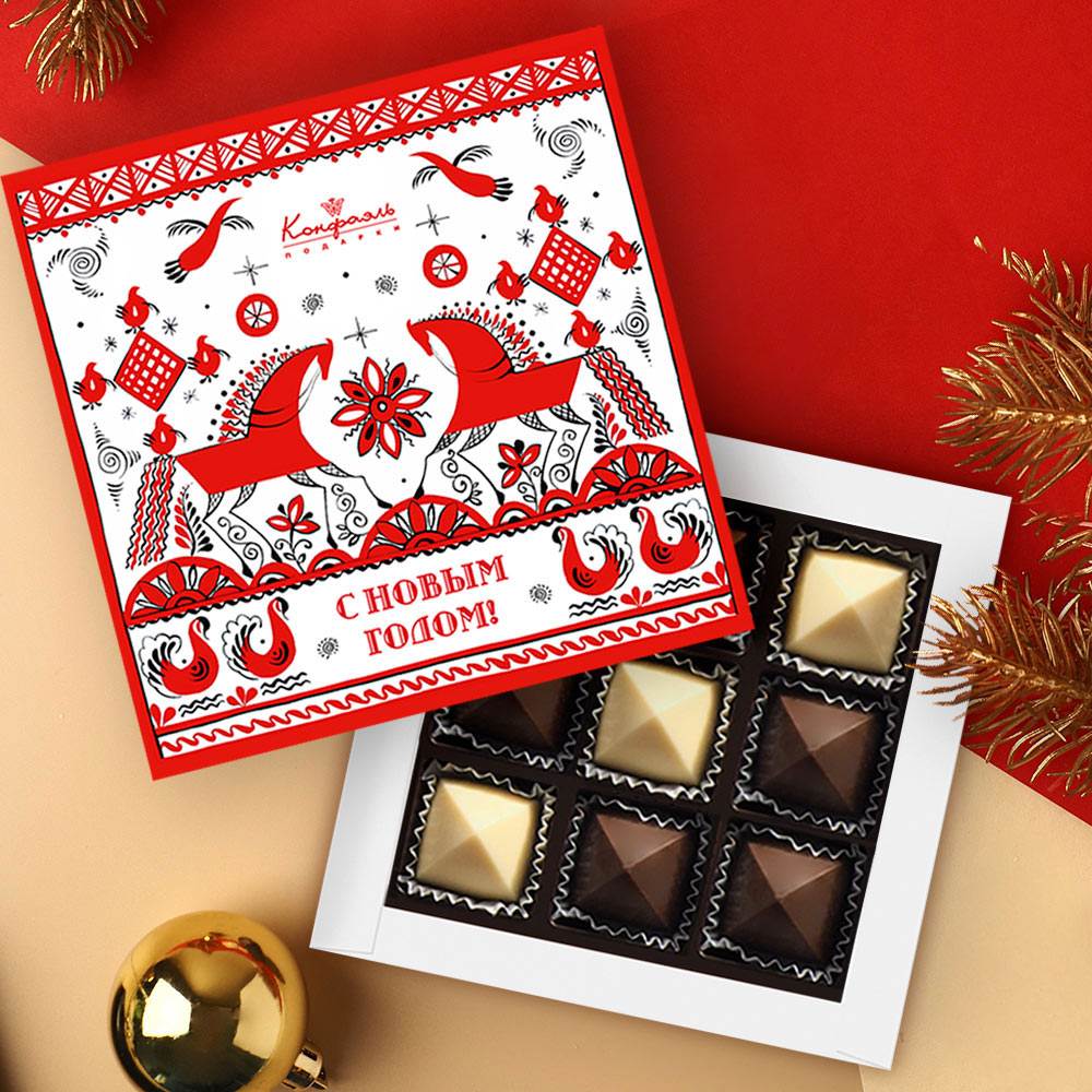 Состав: шоколадные массы – сахар, масло какао, молоко цельное сухое, сухое обезжиренное молоко, пахта сухая, какао тертое, какао-порошок, сыворотка молочная сухая, молочный жир, паста ореховая из ядер фундука, эмульгатор (соевый лецитин,Е476), соль, натуральная ваниль, ароматизаторы; начинки – сахар, патока, какао-масло, какао тертое, молоко сгущенное (молоко цельное, сахар (сахароза, лактоза)), масла растительные рафинированные дезодорированные (подсолнечное, рапсовое, оливковое; масло сладко-сливочное, молоко сухое обезжиренное), жир специального назначения (масло ши, рапсовое масло, соевое масло, антиокислитель( лимонная кислота)), молоко сухое цельное, молоко сухое обезжиренное, белый шоколад (сахар, масло какао, сухое обезжиренное молоко, сухое цельное молоко, эмульгатор (лецитин соевый), экстракт ванили), стабилизатор (мальтодекстрин), коньяк (дистиллят коньячный, вода, сахар, пищевой краситель (сахарный колер)), консервант (сорбиновая кислота), регулятор кислотности (лимонная кислота), эмульгаторы (лецитин соевый, Е471), ароматизаторы. Продукция производится на предприятии, где используются арахис, кунжут, орехи, яичные и молочные продукты, злаки, содержащие глютен.