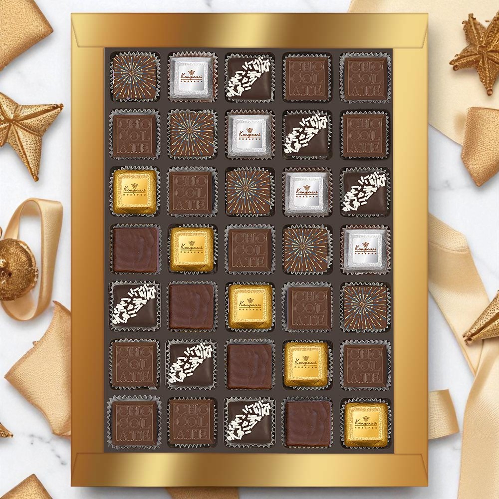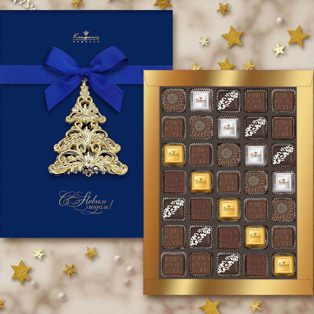Шоколадная конфеты «Ассорти» со сливочными и кремовой начинками, с кремовой начинкой и декором, конфета «Суфле» в горьком шоколаде (ананасовое), конфеты «Мягкий грильяж» в горьком шоколаде
