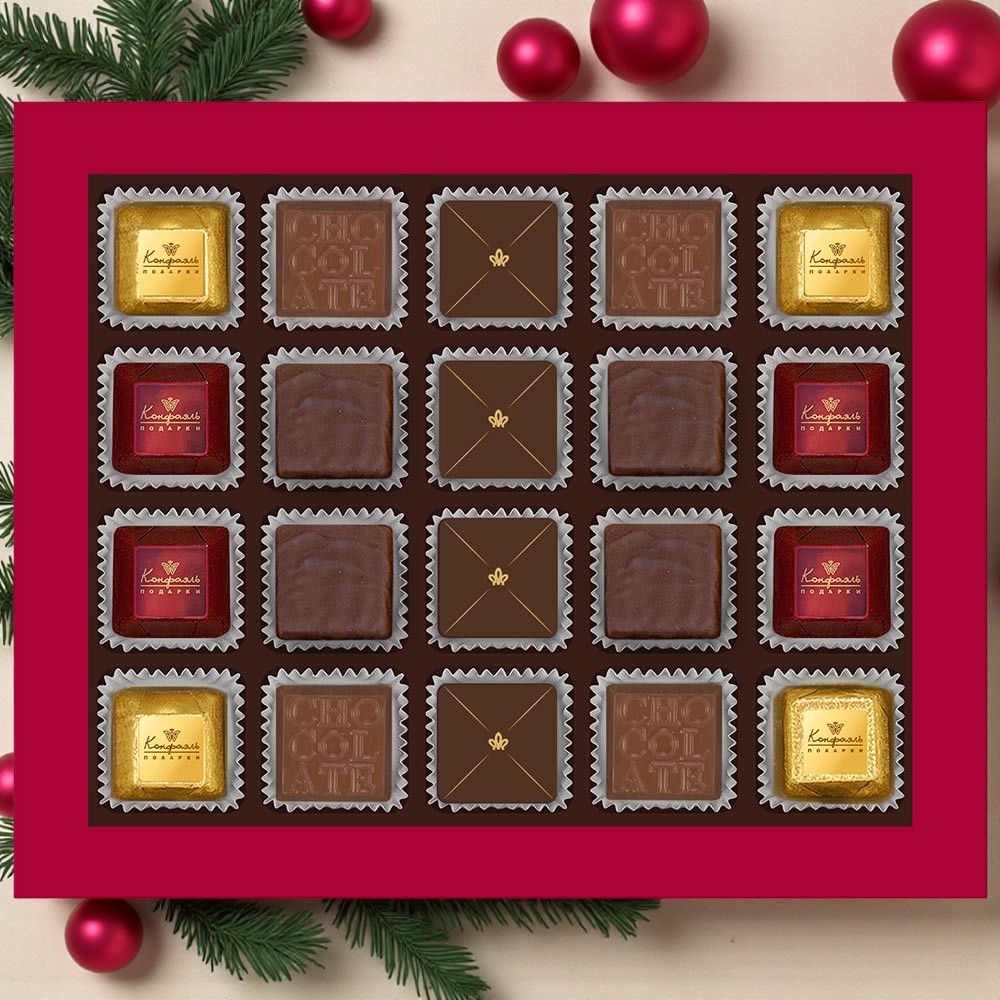 Тогда попробуйте наш эксклюзивный новогодний набор шоколадных конфет! Эта прекрасная коллекция представляет собой отличный выбор для настоящих ценителей прекрасного и любителей качественного шоколада.