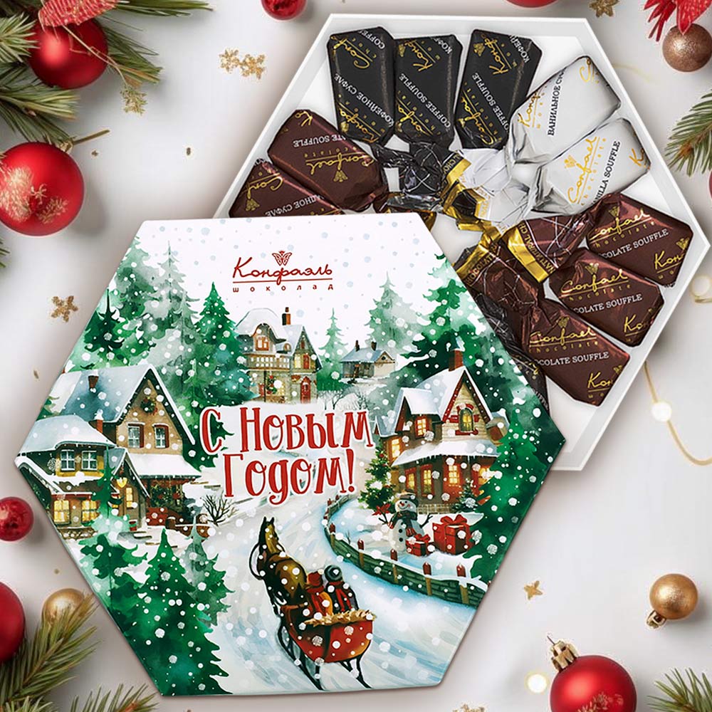 Новогодний набор суфле в шоколаде (ванильное, шоколадное, кофейное) 105г (пейзаж)