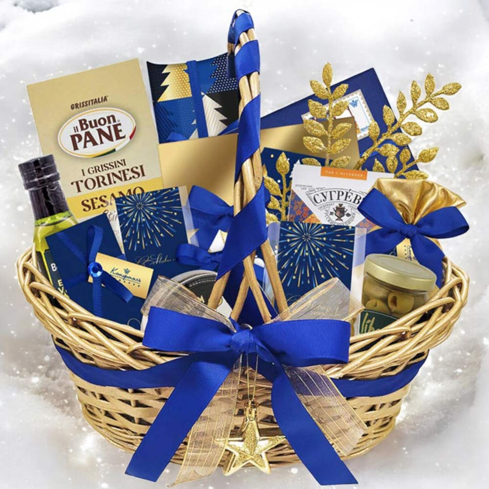 "Новогодняя корзина": шоколад, драже, конфеты, риет, мед, чай 2015г