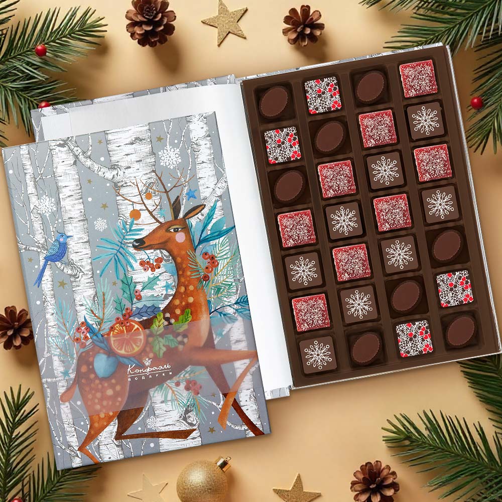 «Олень» книга с конфетами ассорти и мармеладом 260г