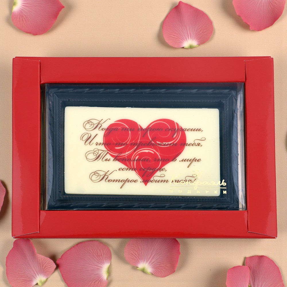 Шоколадная открытка со словами любви и нежности — прекрасный романтичный подарок любимому человеку на День всех влюбленных, семейные праздники и просто символ внимания и бесконечной признательности.