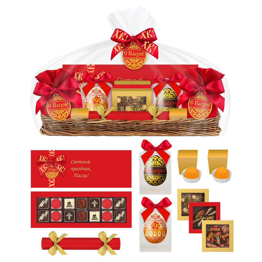 Пасхальная корзина с шоколадом и конфетами ручной работы 665г