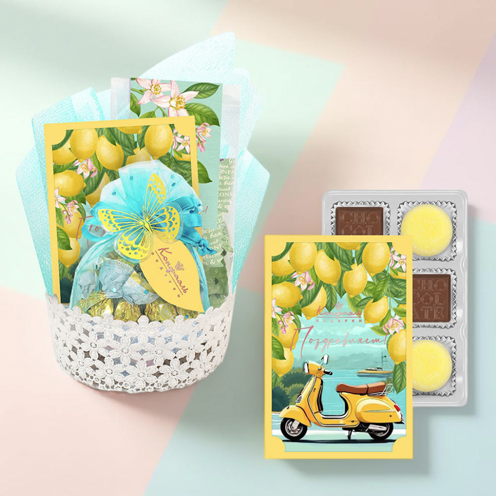 Поздравление 06/ Шоколадные конфеты «Ассорти» с кремовой начинкой , мармелад желейный со вкусом «Банан»/ 80г