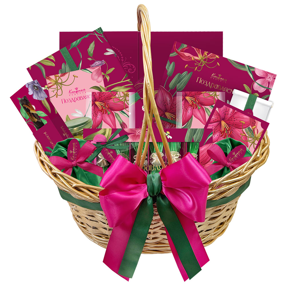 Подарочная корзина: шоколад, драже, конфеты глазированные, конфеты ручной работы 2265г
