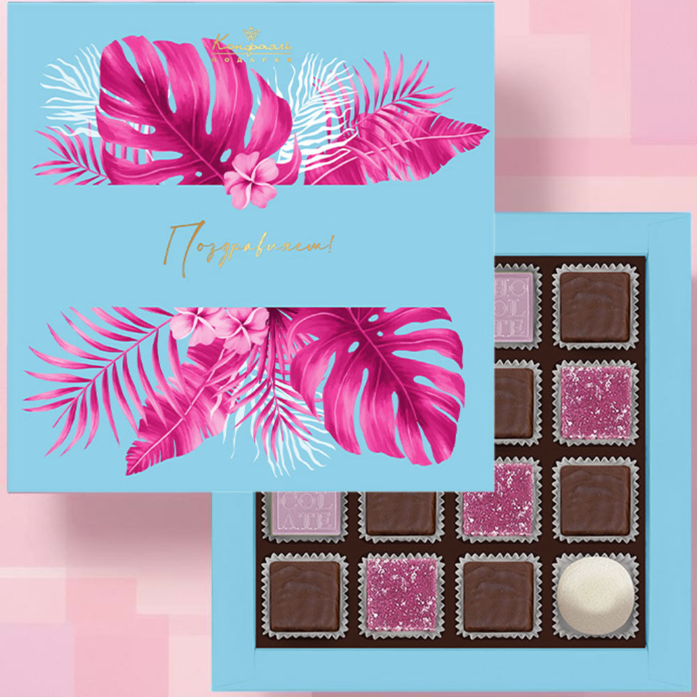 "Поздравляем" подарочный набор конфет ассорти (тропики)