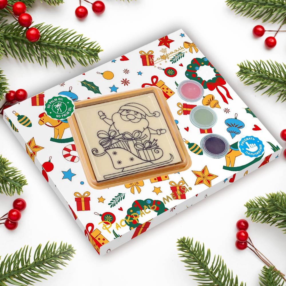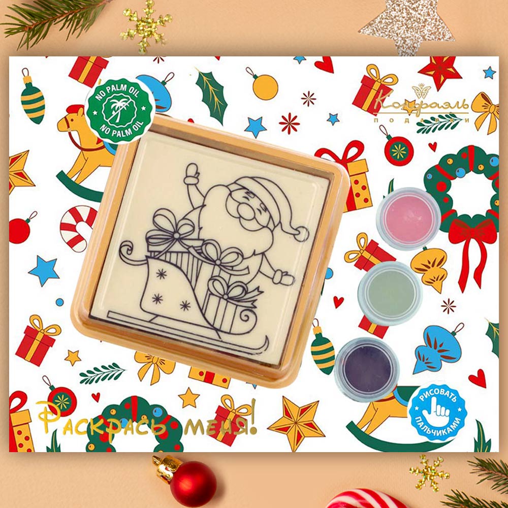 Маленькие озорники могут сначала раскрасить веселого Деда Мороза разноцветными шоколадными красками, а потом съесть его или оставить рисунок на память.