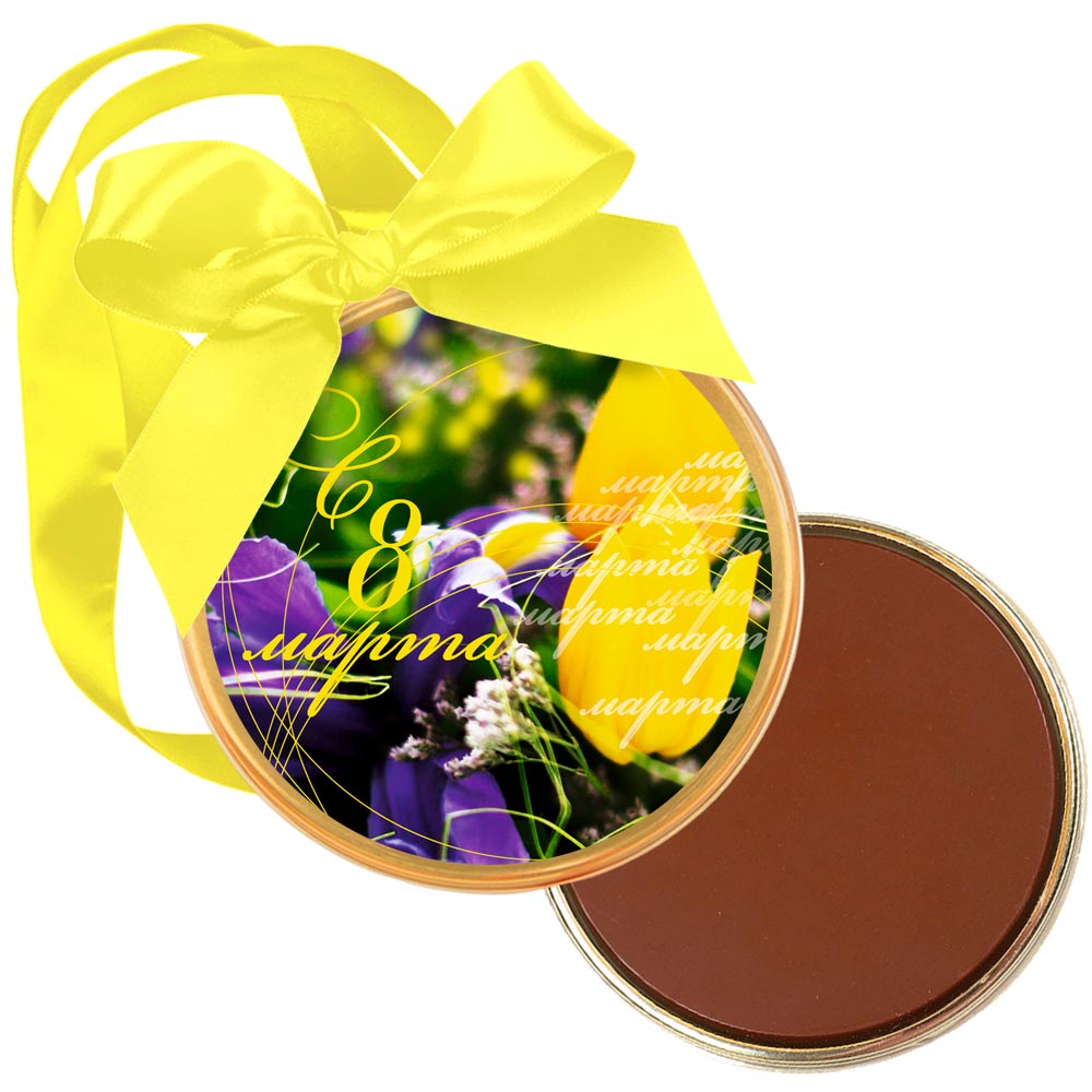 «С 8 марта» медаль молочный шоколад 70г (тюльпаны)