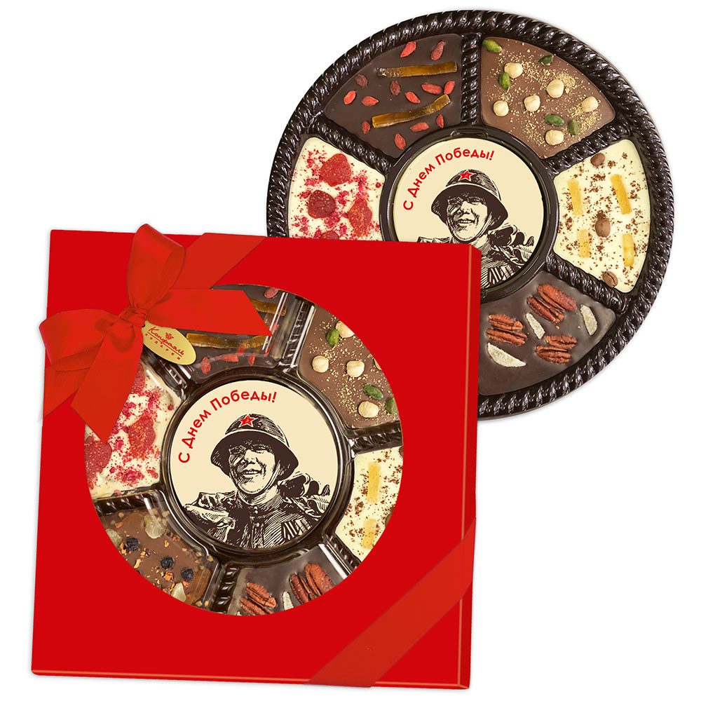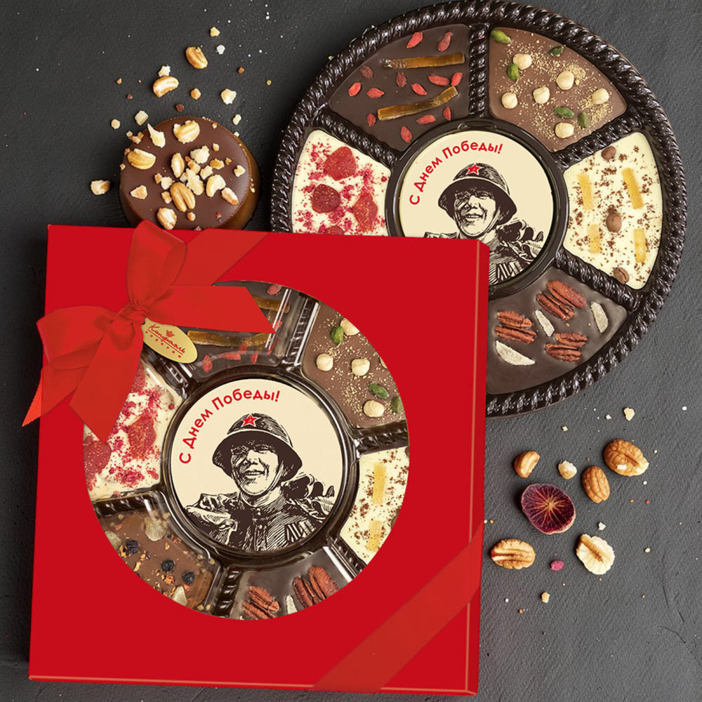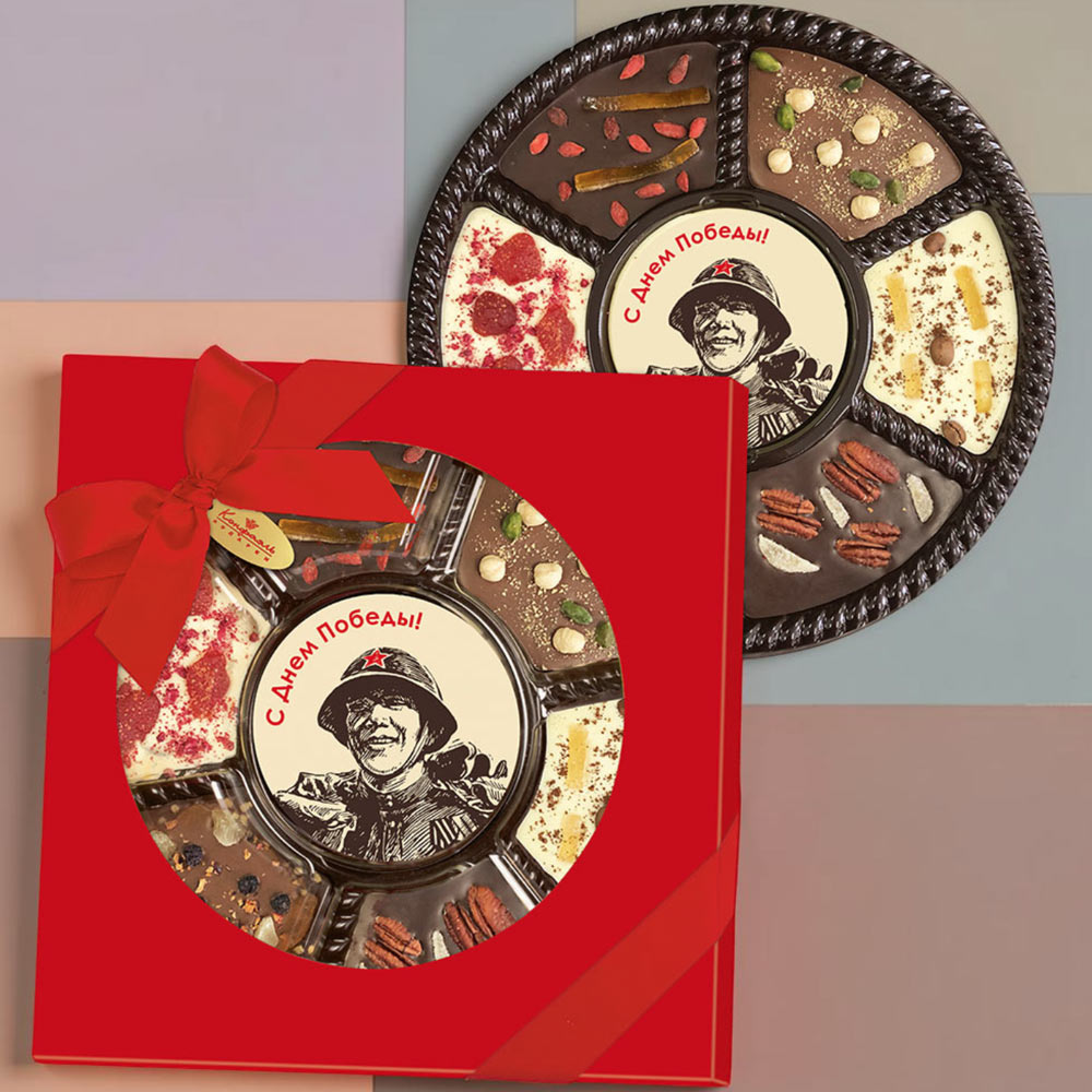 Состав: шоколадная масса – какао-масло, сахар, молоко сухое цельное, молоко сухое обезжиренное, лактоза, эмульгатор (лецитин соевый), ароматизатор («Ванилин»); декор – пищевые красители (куркумин, Е132, Е171, Е172), пищевой краситель (концентрированный сок красной свеклы, масло подсолнечное, эмульгаторы (мальтодекстрин, Е472с), регуляторы кислотности (лимонная кислота, аскорбиновая кислота))