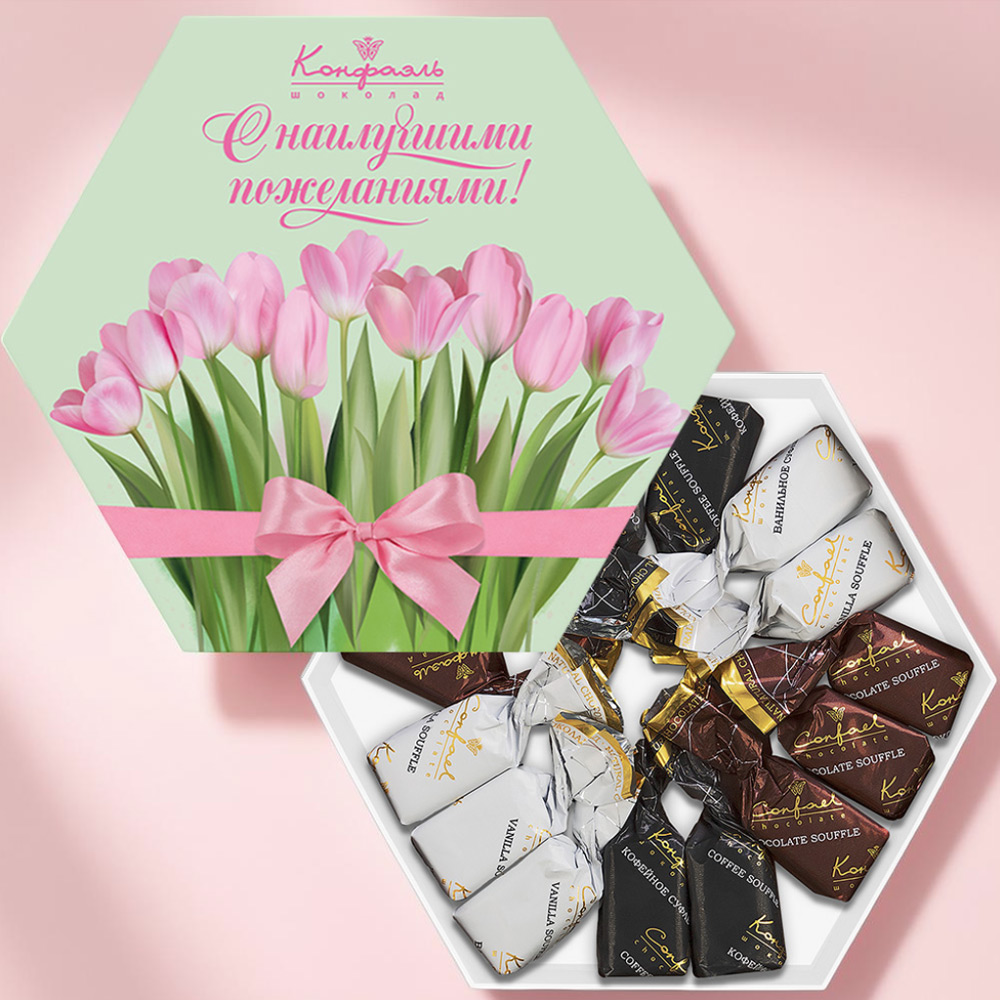 Шоколадные подарки Конфаэль производятся людьми, которые любят свое дело. Будьте уверены, мы отнесемся к вашему подарку, как